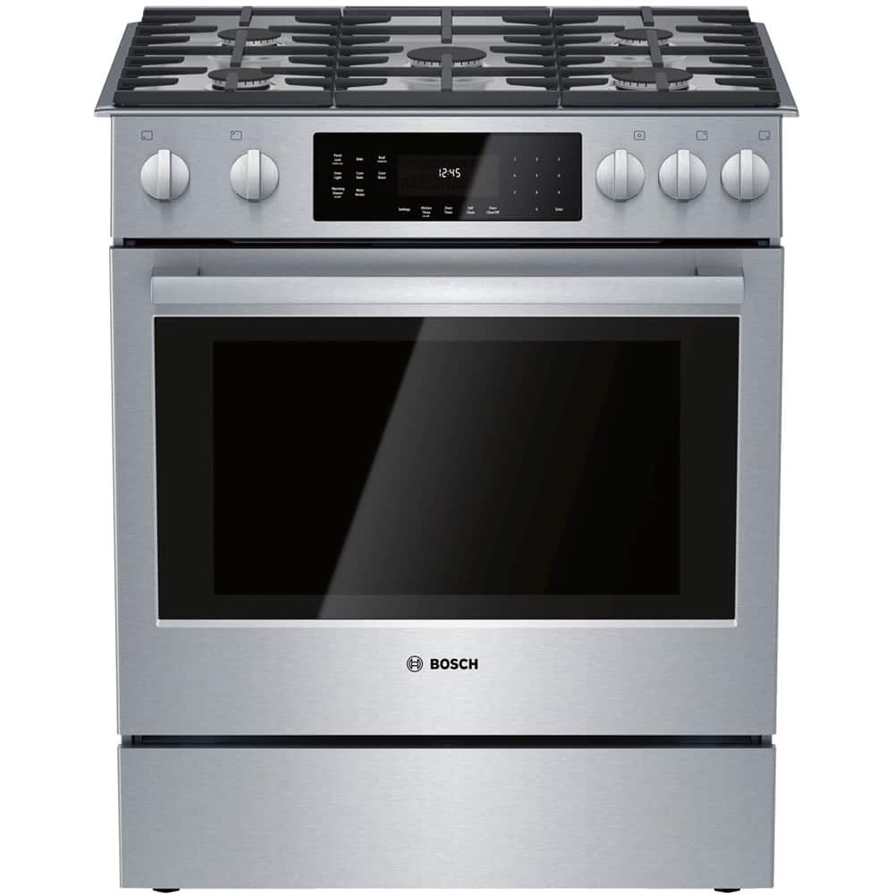 Bosch – 800 Series 4.8 Cu. Ft. Slide-In Gas Convection Range with Self-Cleaning and Dual Flame Burner – Stainless Steel