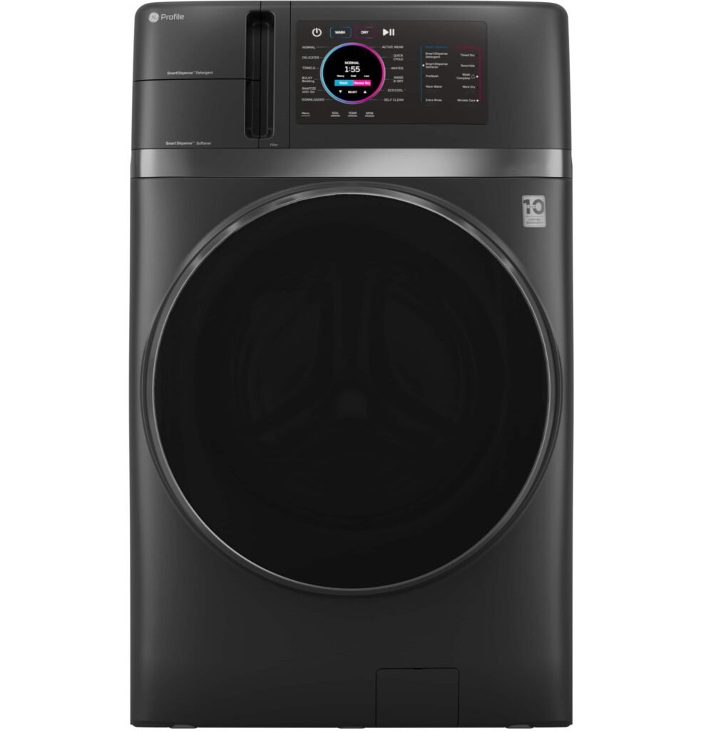 GE Profile – UltraFast 4.8 Cu. Ft. High-Efficiency Smart Front Load Washer and Electric Dryer Combo with Ventless Heat Pump – Carbon Graphite