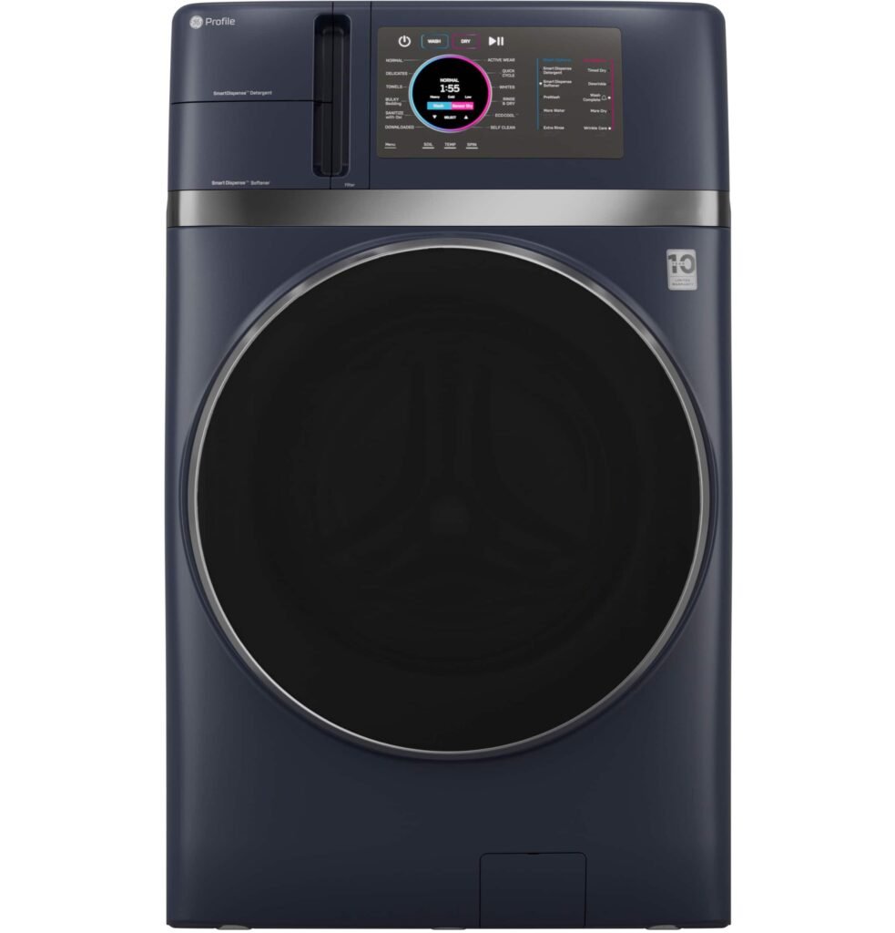GE Profile – UltraFast 4.8 Cu. Ft. High-Efficiency Smart Front Load Washer and Electric Dryer Combo with Ventless Heat Pump – Sapphire Blue