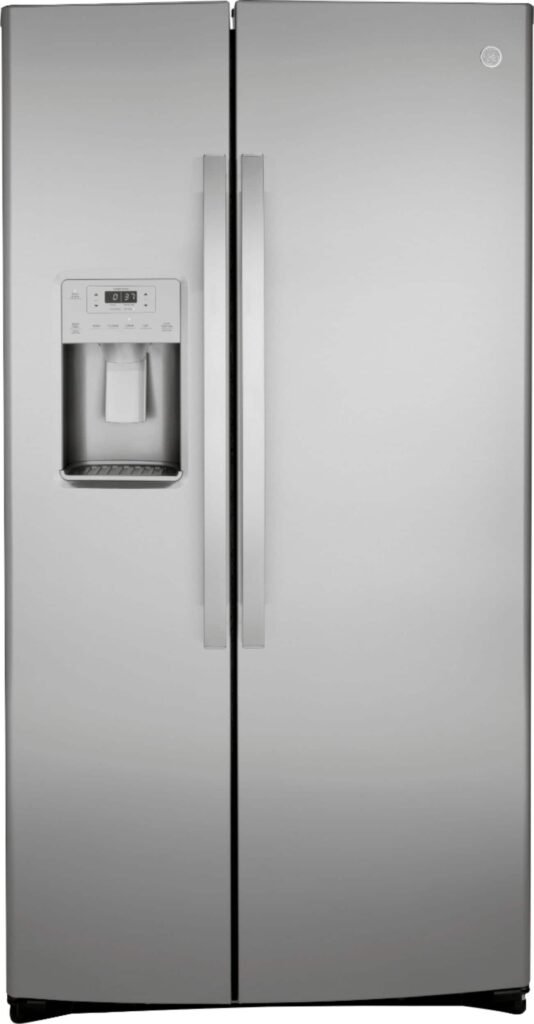 GE – 23.0 Cu. Ft. Side-by-Side Refrigerator with External Ice & Water Dispenser – Stainless Steel
