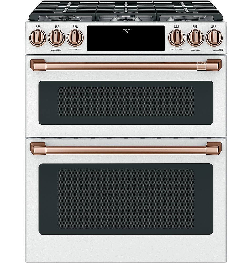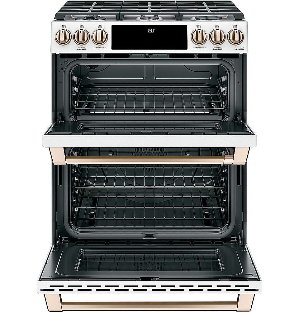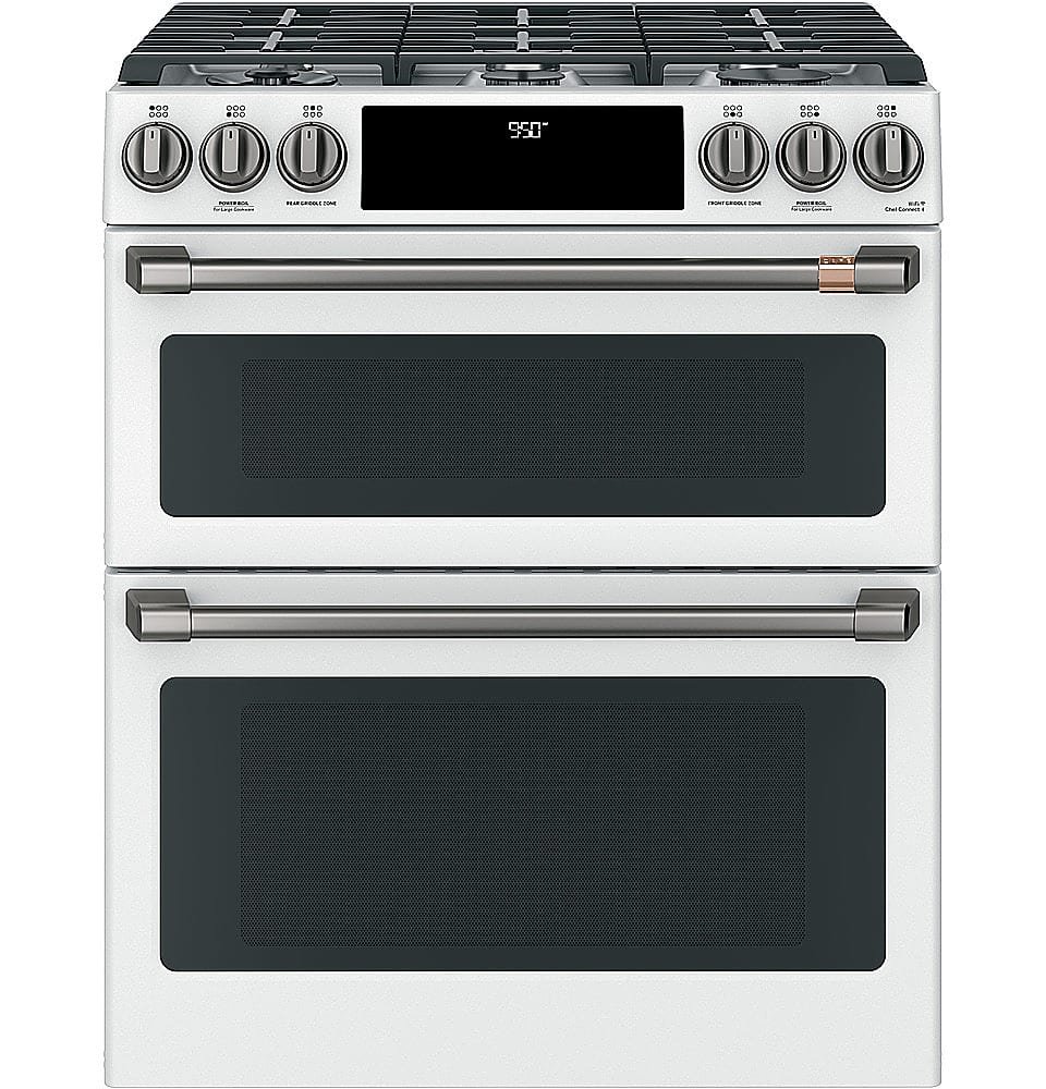 Café – 6.7 Cu. Ft. Slide-In Double Oven Gas True Convection Range with Built-In Wi-Fi, Customizable – Matte White