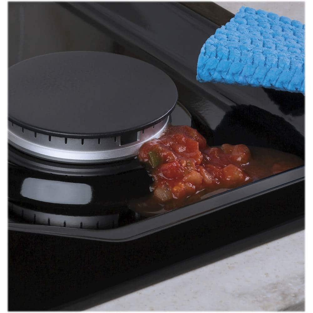 This GE gas cooktop combines a 30-inch layout with a black finish for practical built-in everyday cooking.