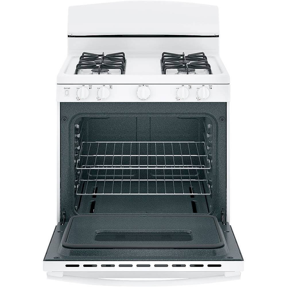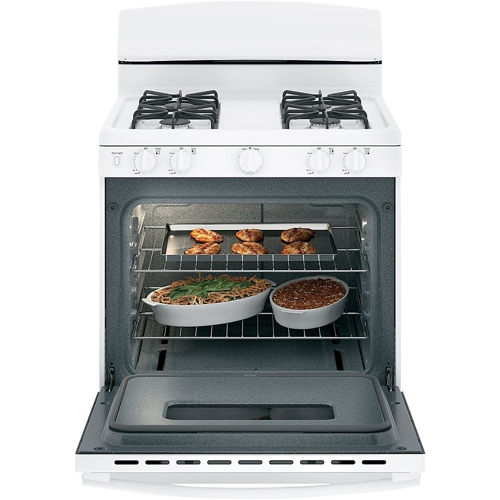 This GE gas range combines 4.8 cu. ft. capacity, practical everyday performance in a White finish.