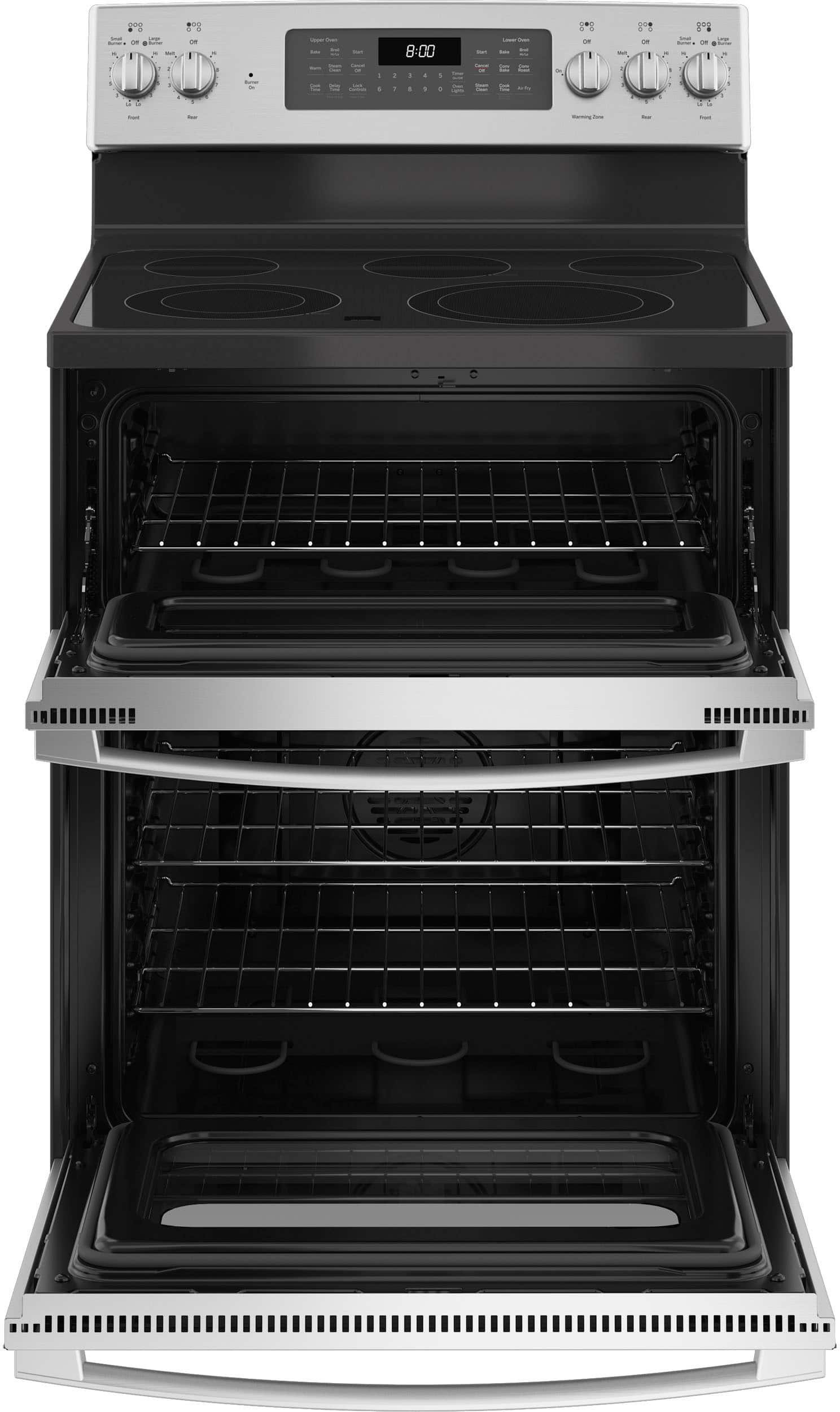GE – 6.6 Cu. Ft. Freestanding Double Oven Electric Convection Range with Self-Steam Cleaning and No-Preheat Air Fry – Stainless Steel