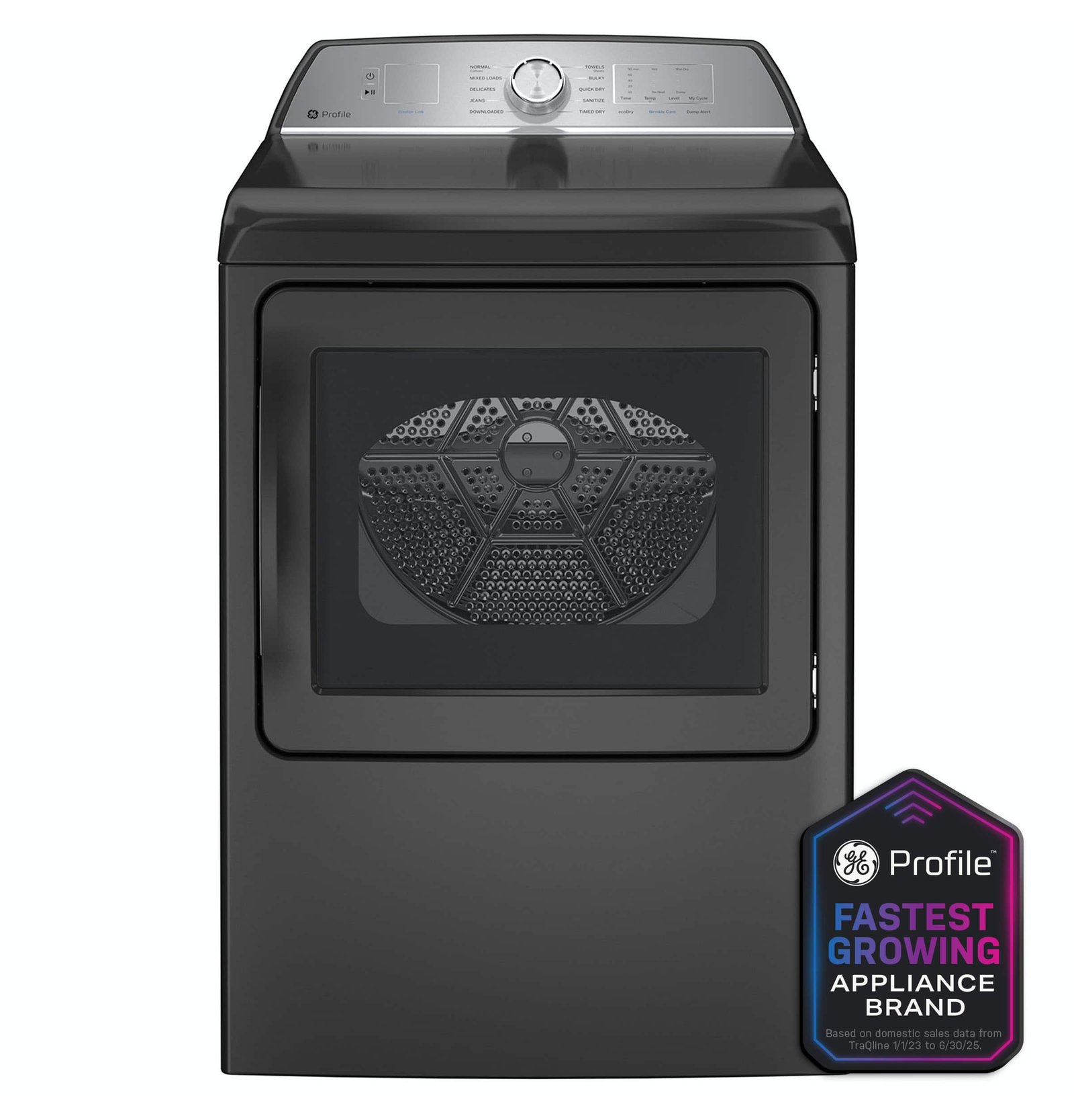 This GE Profile appliance combines 7.4 cu. ft. capacity, smart features, sanitize cycle in a Diamond Gray finish.
