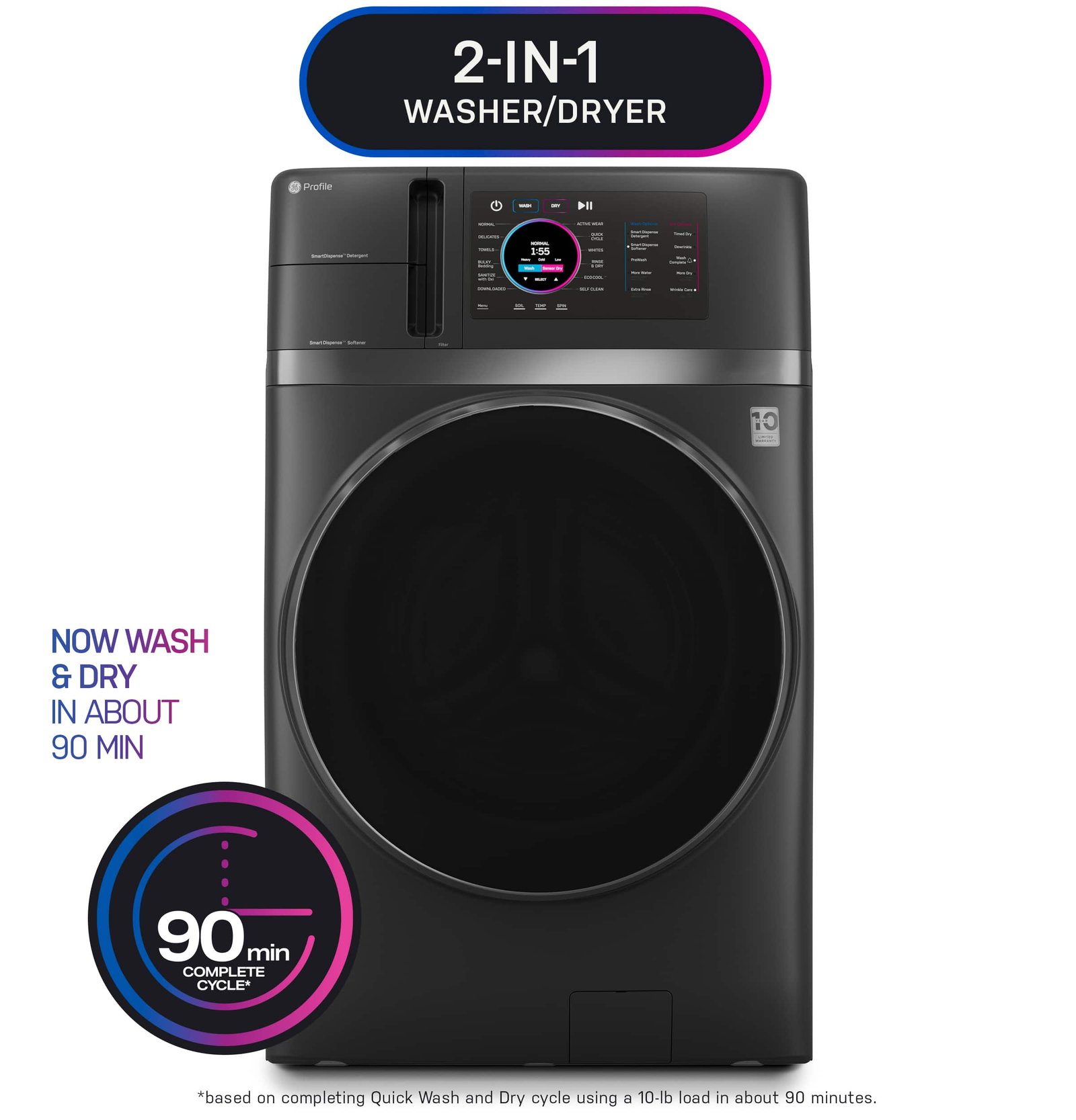 GE Profile – UltraFast 4.8 Cu. Ft. High-Efficiency Smart Front Load Washer and Electric Dryer Combo with Ventless Heat Pump – Carbon Graphite