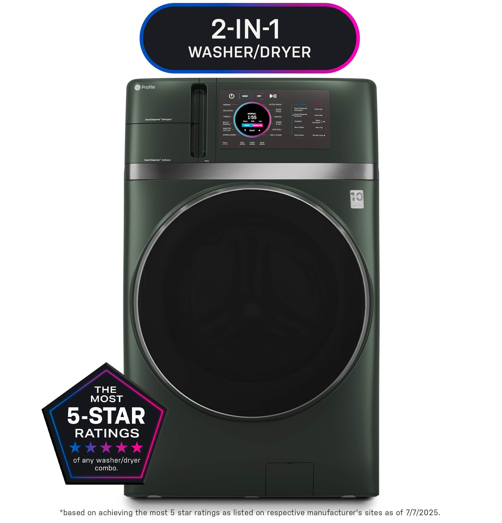 GE Profile – UltraFast 4.8 Cu. Ft. High-Efficiency Smart Front Load Washer and Electric Dryer Combo with Ventless Heat Pump – Jade Green