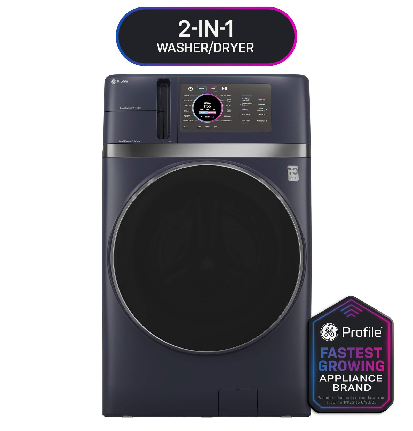 GE Profile – UltraFast 4.8 Cu. Ft. High-Efficiency Smart Front Load Washer and Electric Dryer Combo with Ventless Heat Pump – Sapphire Blue