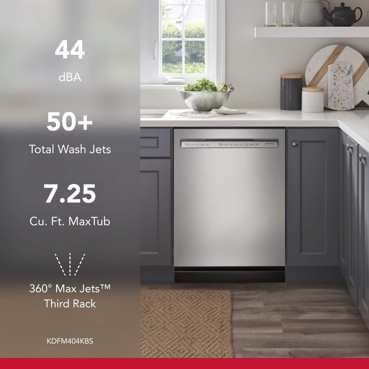 KitchenAid – 24″ Front Control Built-In Stainless Steel Tub Dishwasher with 3rd Rack, 50+ Total Wash Jets, 44 dBA – Stainless Steel