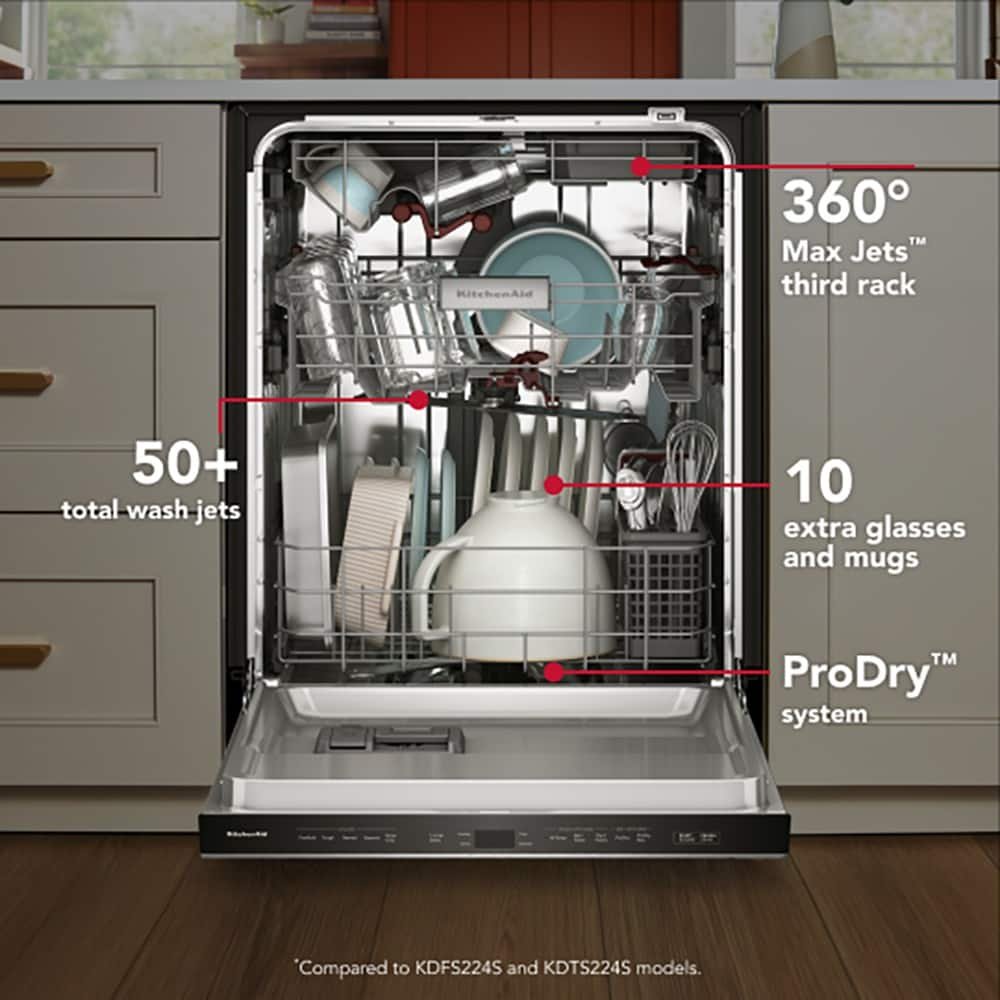 KitchenAid – 24″ Top Control Built-In Dishwasher with 360 Max Jets Third Rack and ProDry System, 44 dBA – Stainless Steel