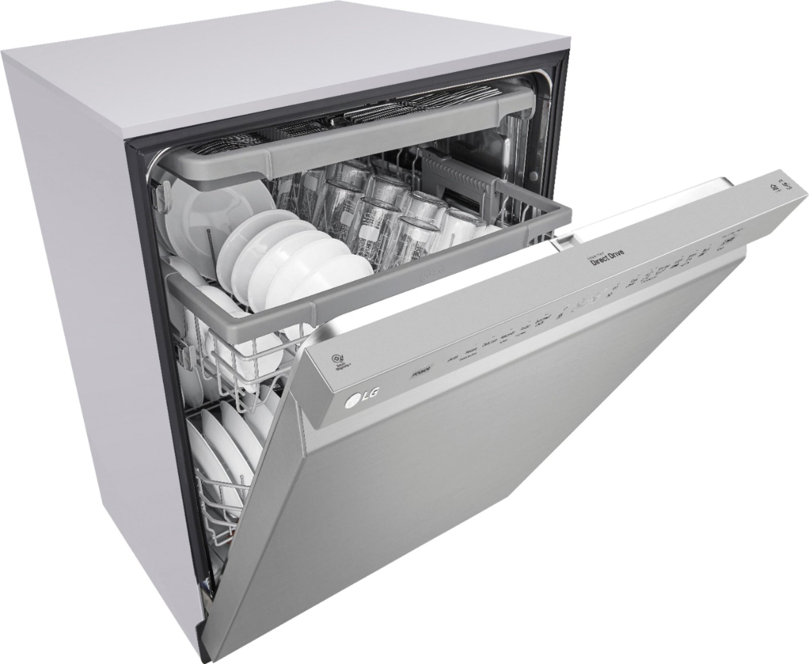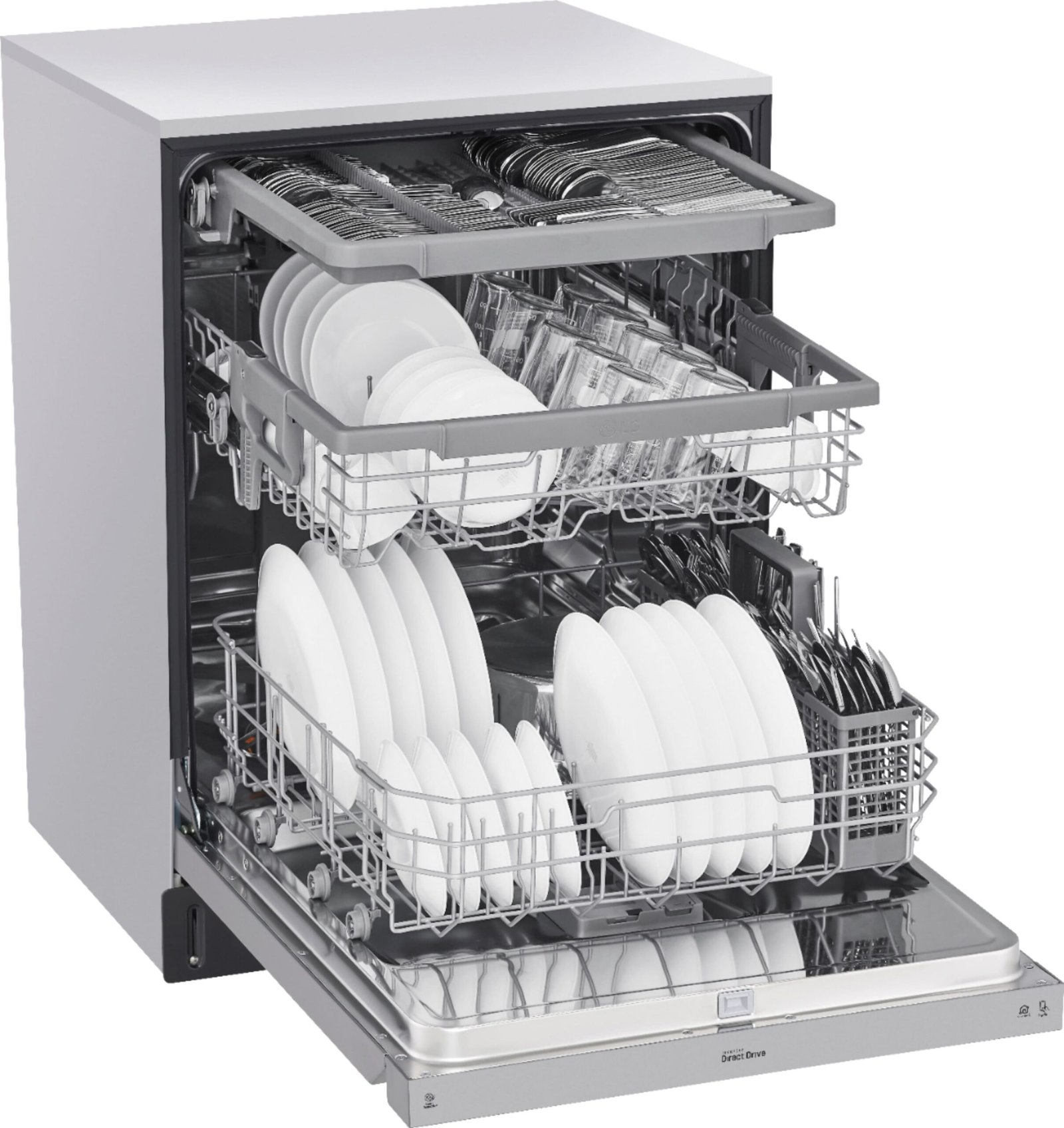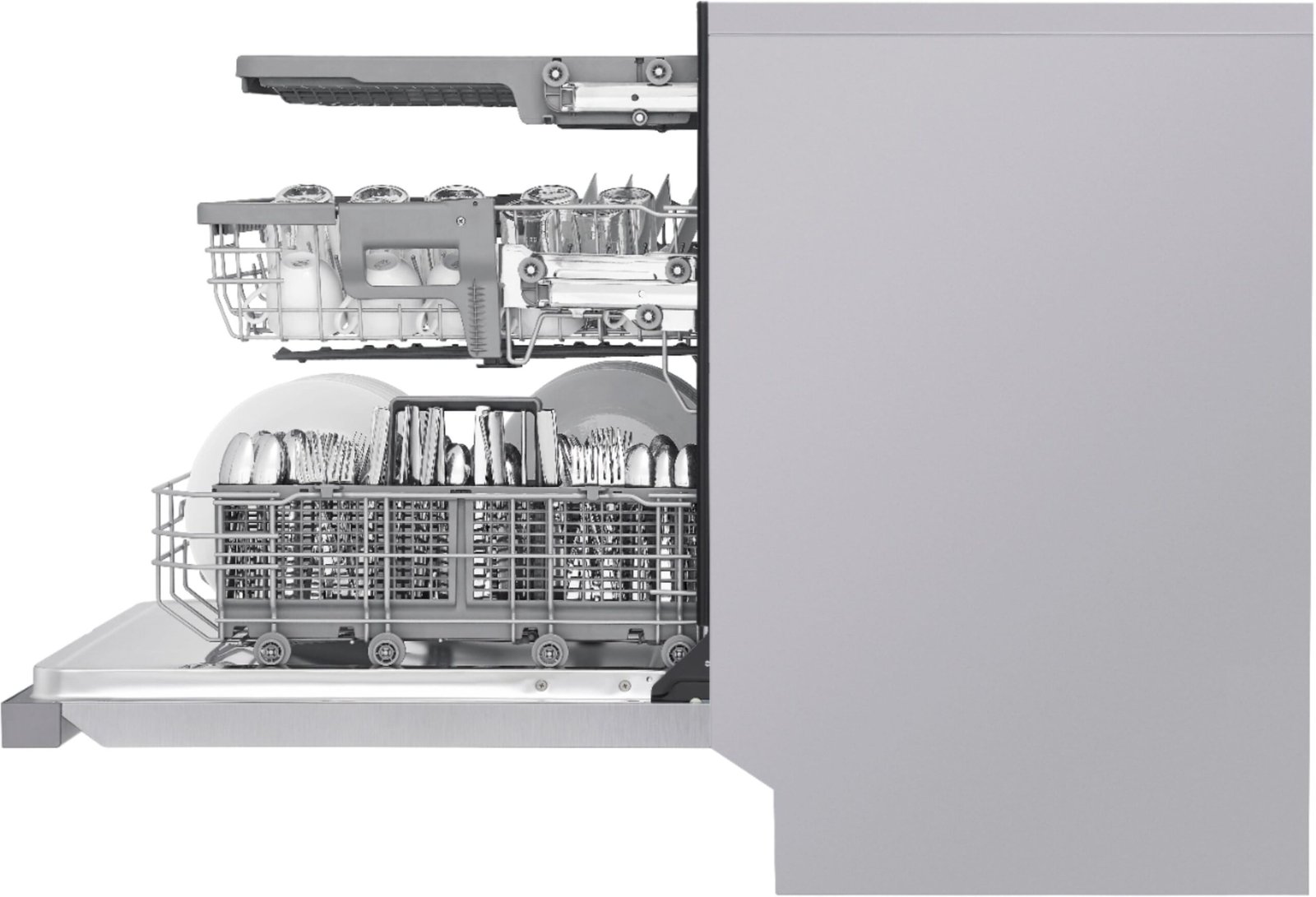 This LG dishwasher combines 24 in. size, 3rd rack, quadwash in a Stainless Steel finish.