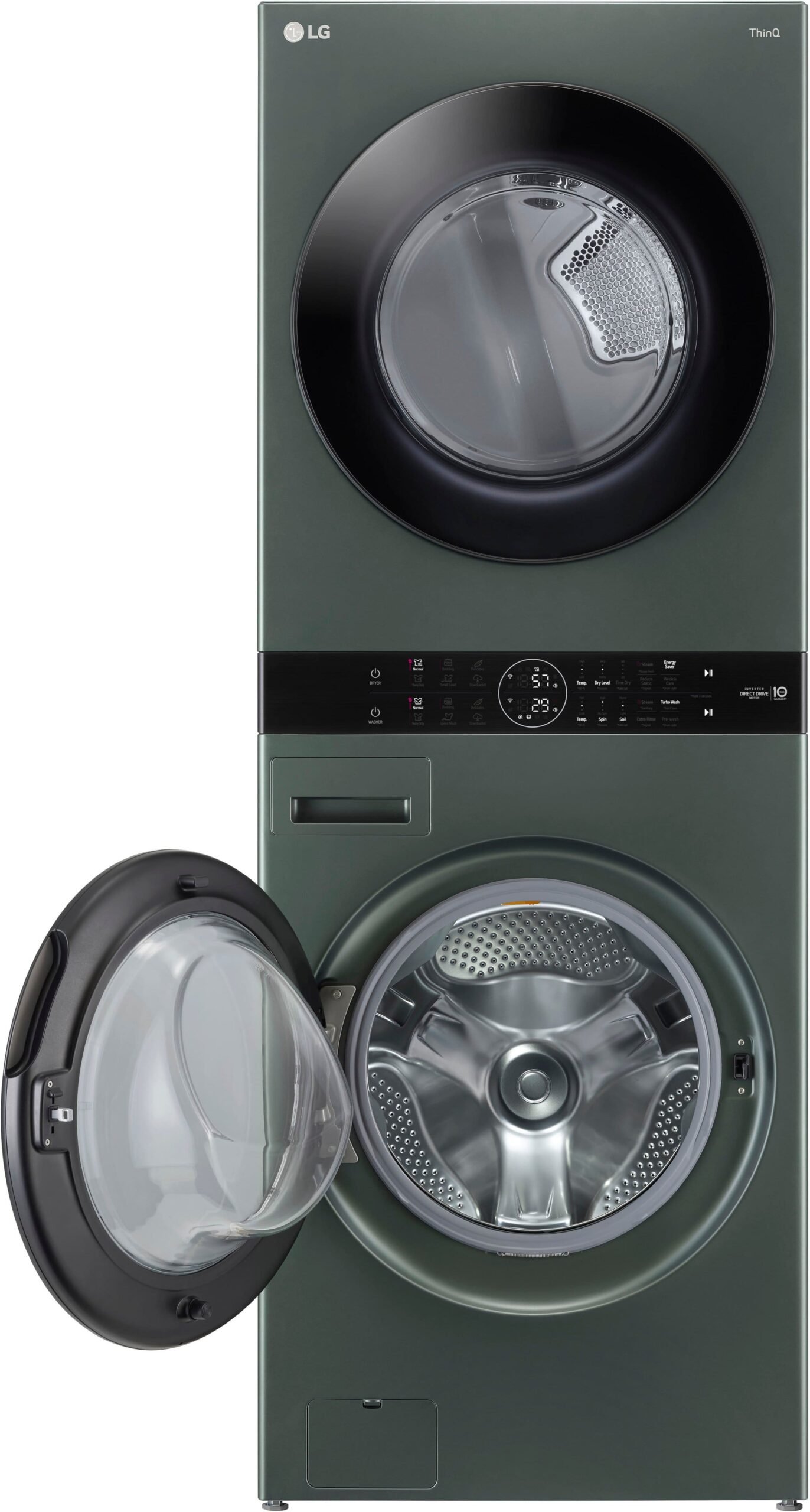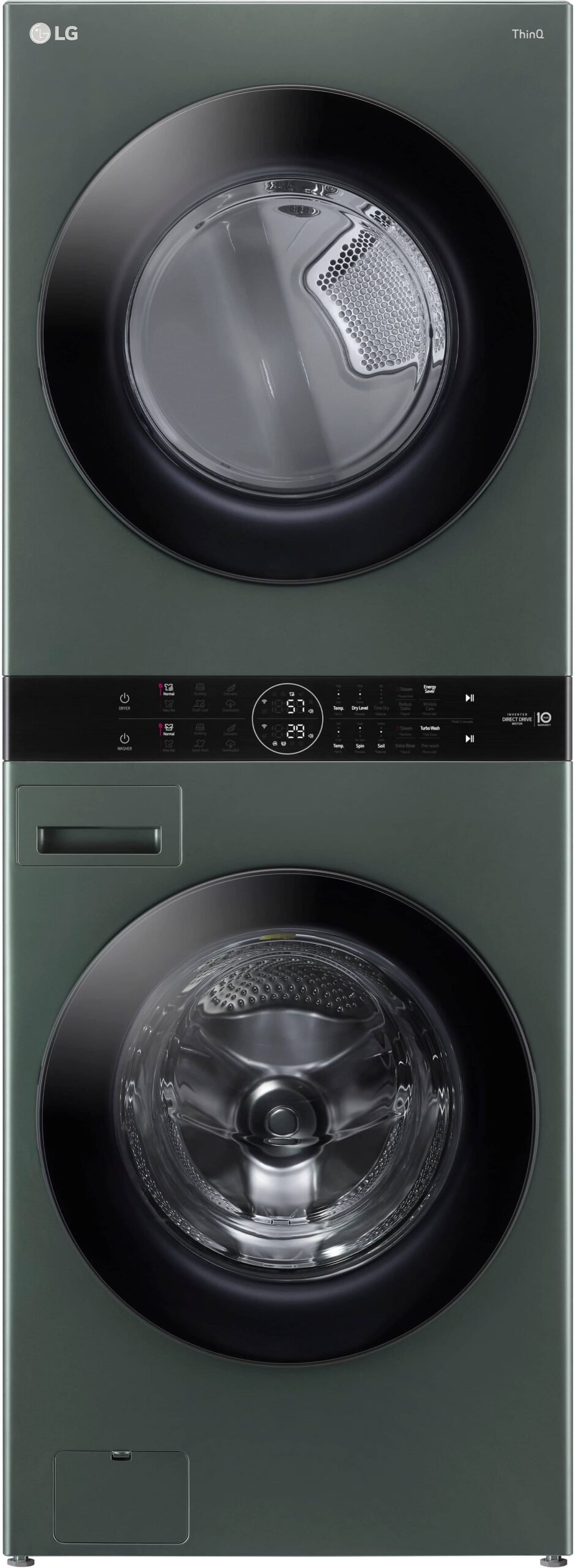 This LG laundry tower combines 4.5 cu. ft. capacity, smart features, steam support in a Nature Green finish.