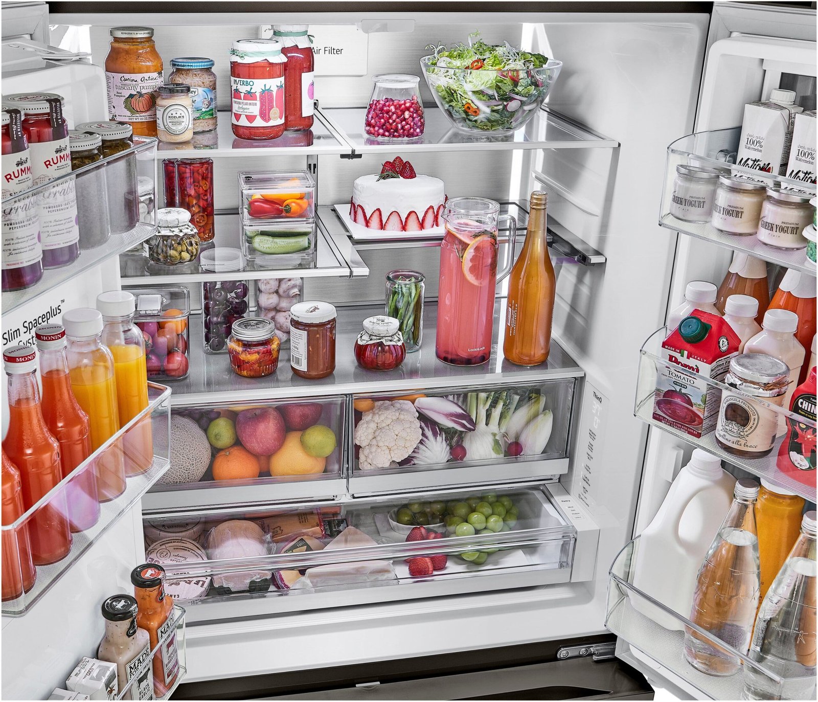 This LG refrigerator combines 25.5 cu. ft. capacity, smart features in a Black Stainless Steel finish.
