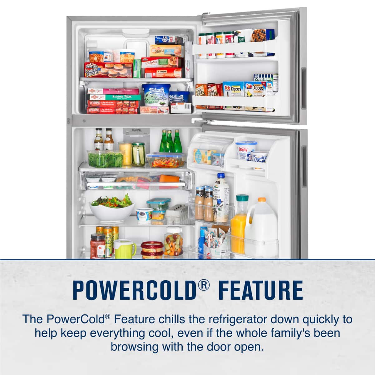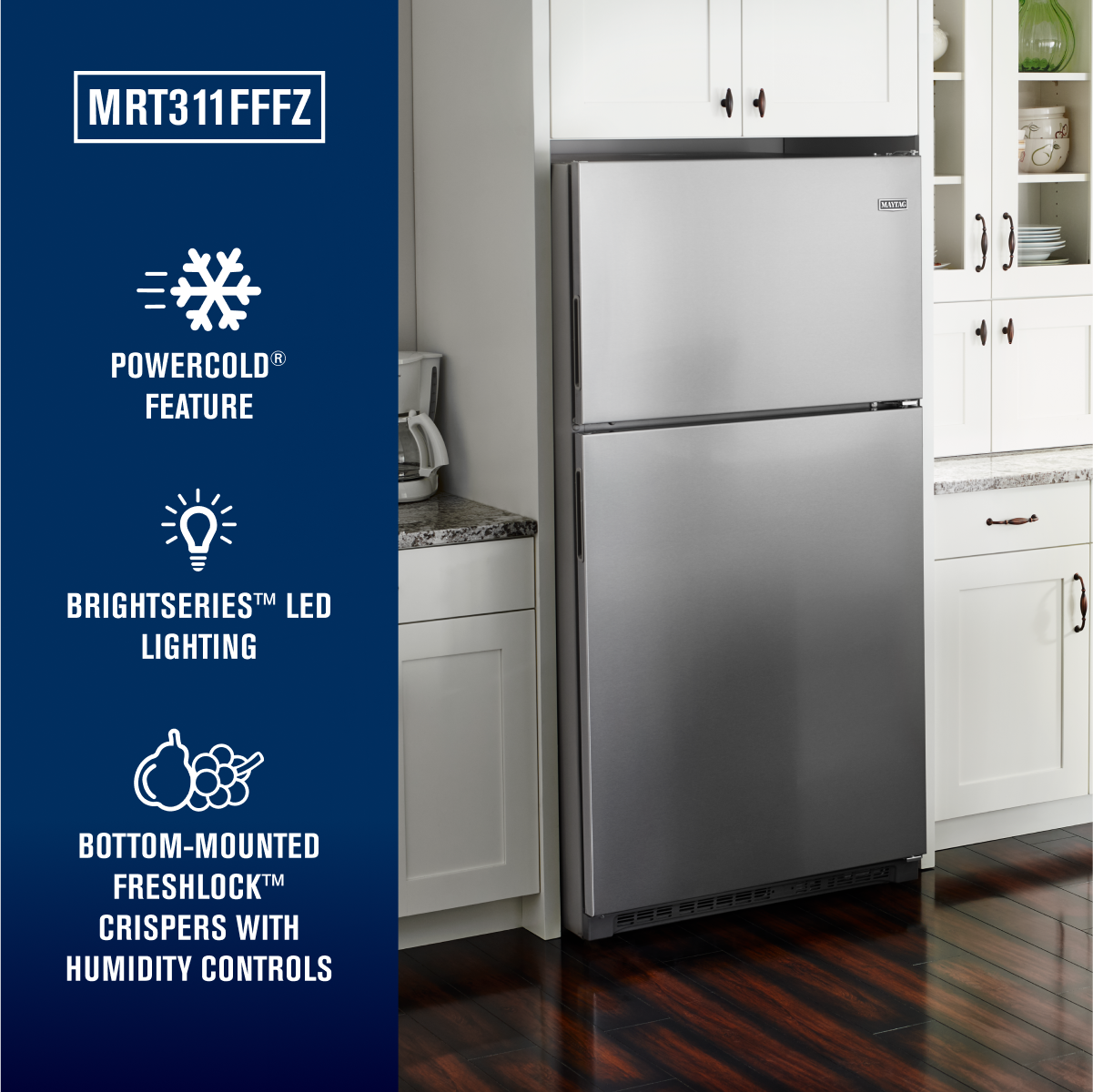 This Maytag refrigerator combines 20.5 cu. ft. capacity, practical everyday performance in a Stainless Steel finish.
