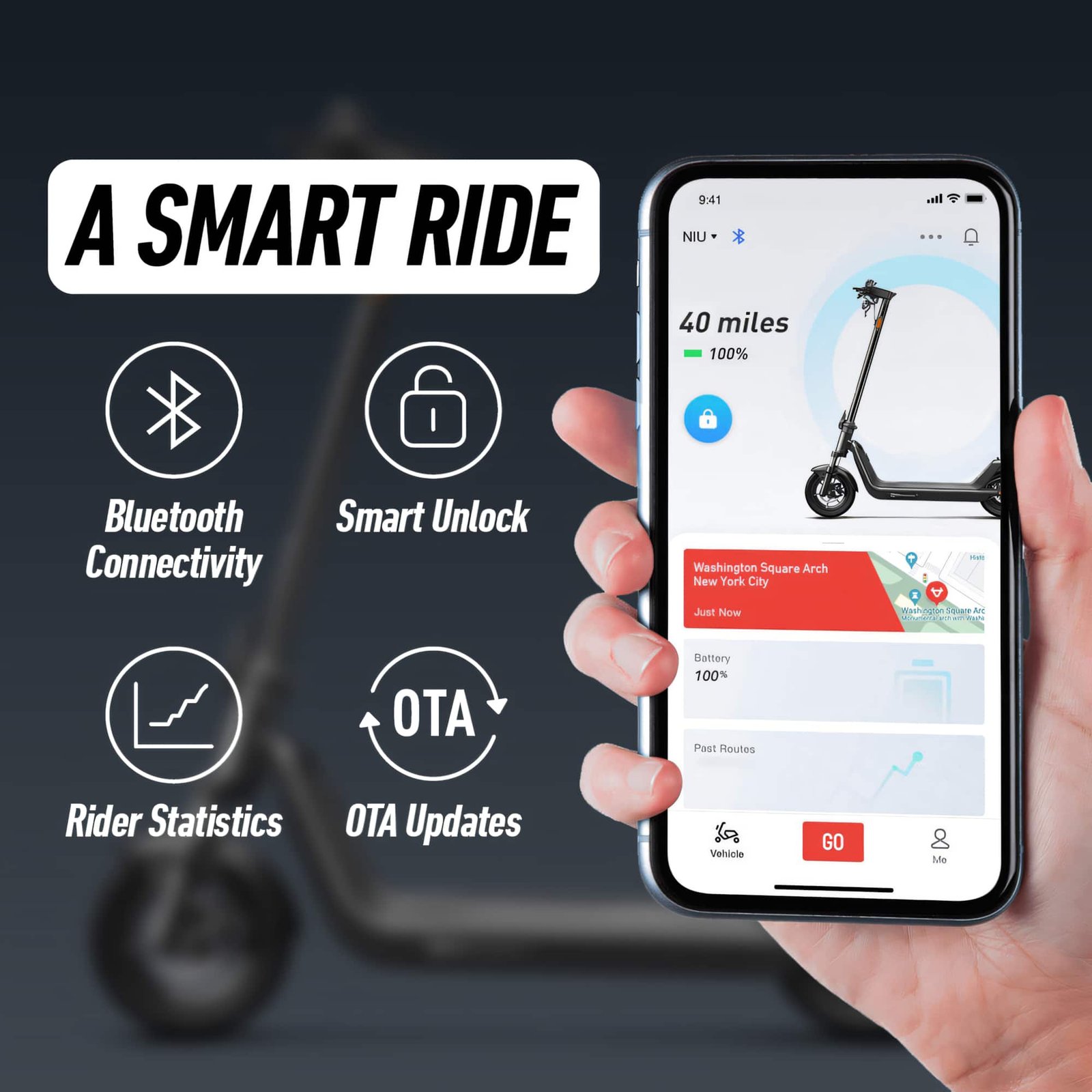 Don’t let rough roads limit your ride. KQi 300P features an all-new, dual-tube hydraulic suspension that lets you glide over any uneven surface with ease. Travel further with up to 30mi of range on a single charge, and reach speeds of up to 20mph. Experience maximum performance and take on any road with the KQi 300 series.