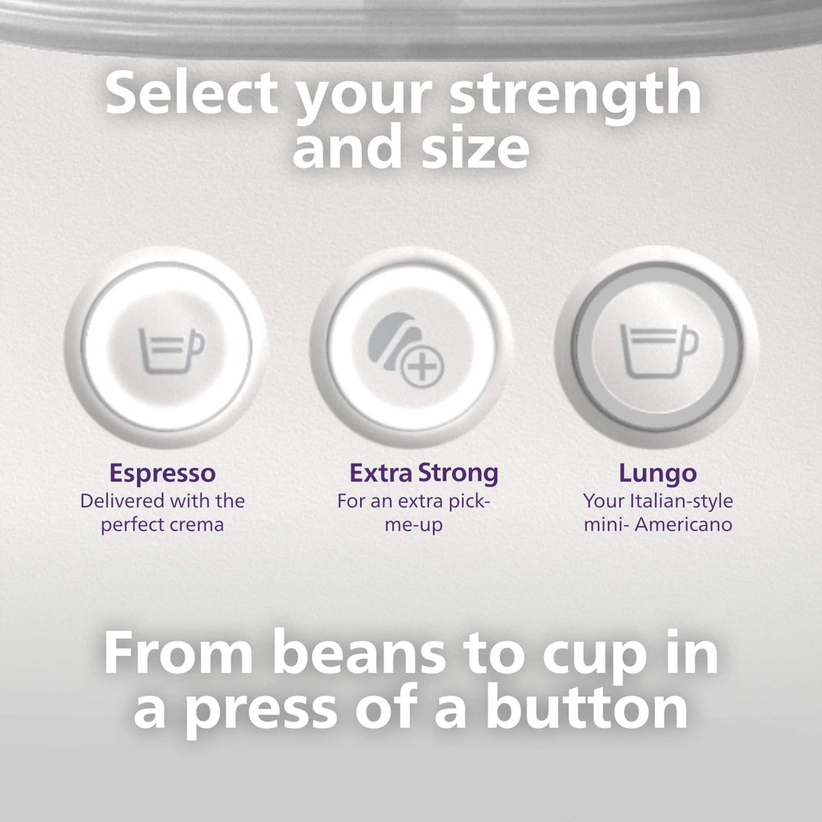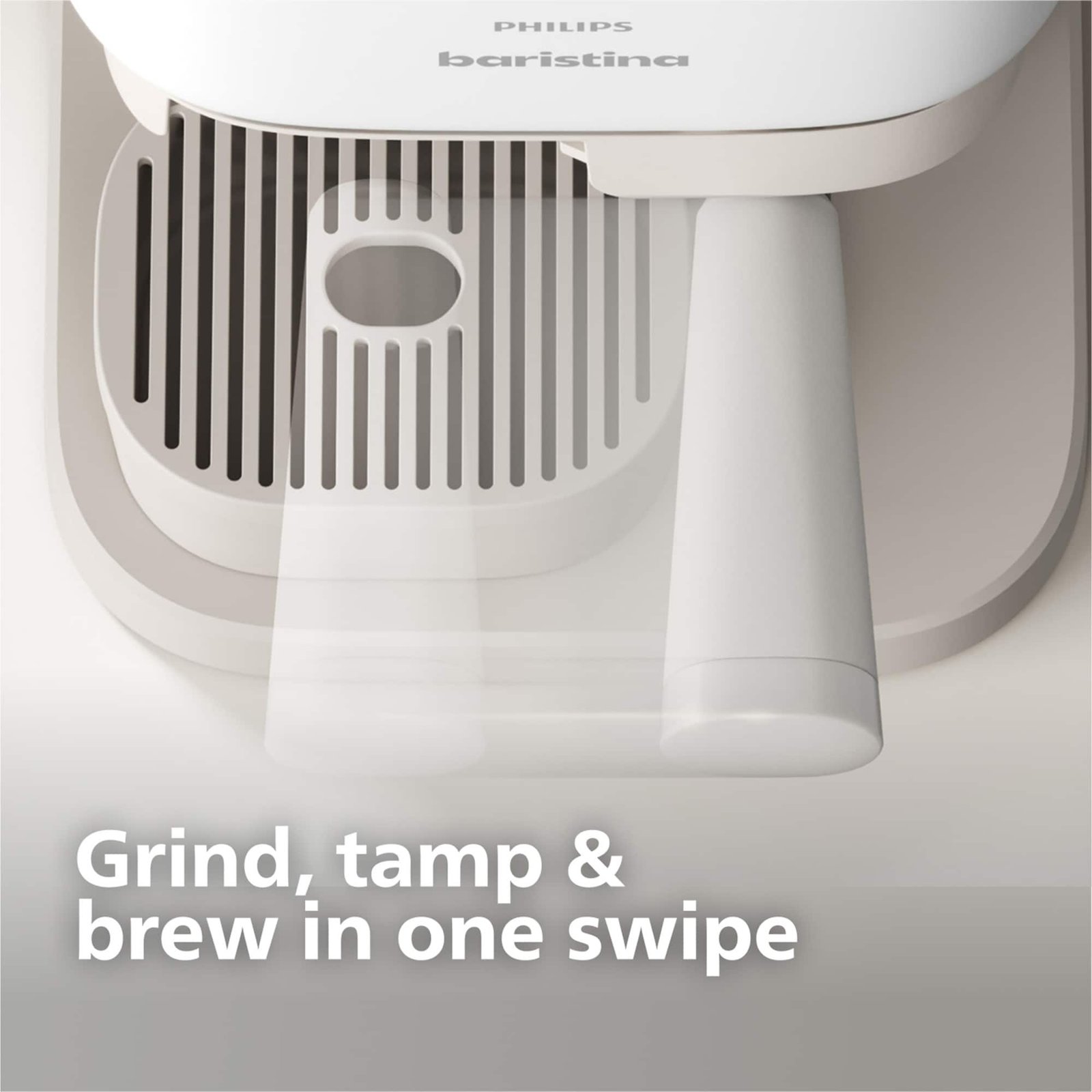 Love real espresso but hate the hassle? Introducing the Philips Baristina Espresso Machine. It grinds, tamps, and brews coffee beans automatically – it’s the barista who lives on your kitchen counter! Pour in your favorite beans, swipe the handle, and let Baristina do the rest. It grinds beans for a super fresh aroma, tamps perfectly into the portafilter, and brews with high pressure, so your coffee tastes just like a barista made it. It’s that simple. Enjoy perfectly brewed espresso on its own, or craft café-style drinks like lattes, cappuccinos, and americanos. Philips Baristina looks after the espresso, so you can simply appreciate a superb brew. So swipe the handle and get ready for real espresso.