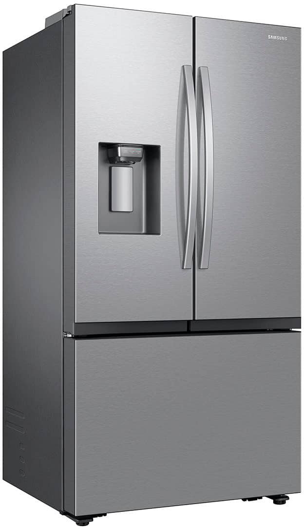 Samsung Mega Capacity 3-Door French Door Counter Depth refrigerator with 26 cu. ft. comes with four types of ice and modern design. Store more groceries, including big and bulky items. The Dual Auto Ice Maker makes two types of ice – cubed or Ice Bites while the external dispenser offers two additional ice options, curved and crushed.