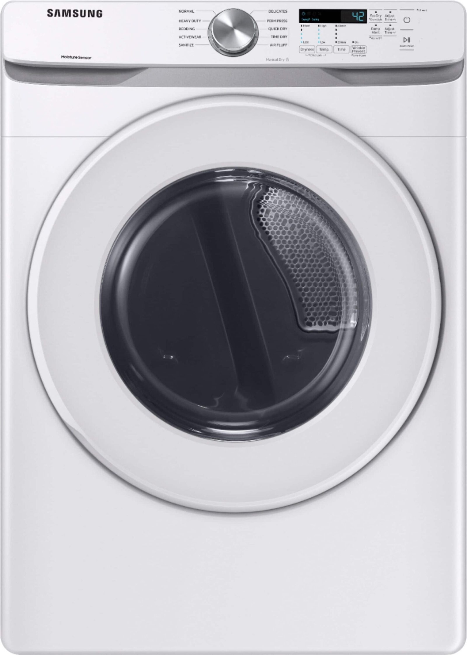 Samsung’s dryers have advanced features like Sensor Dry, which optimizes cycle time and temperature to thoroughly dry without damaging your clothes. Also, with 7.5 cu. ft. capacity and 10 preset drying cycles, you can do fewer loads in less time and fulfill almost every drying need.