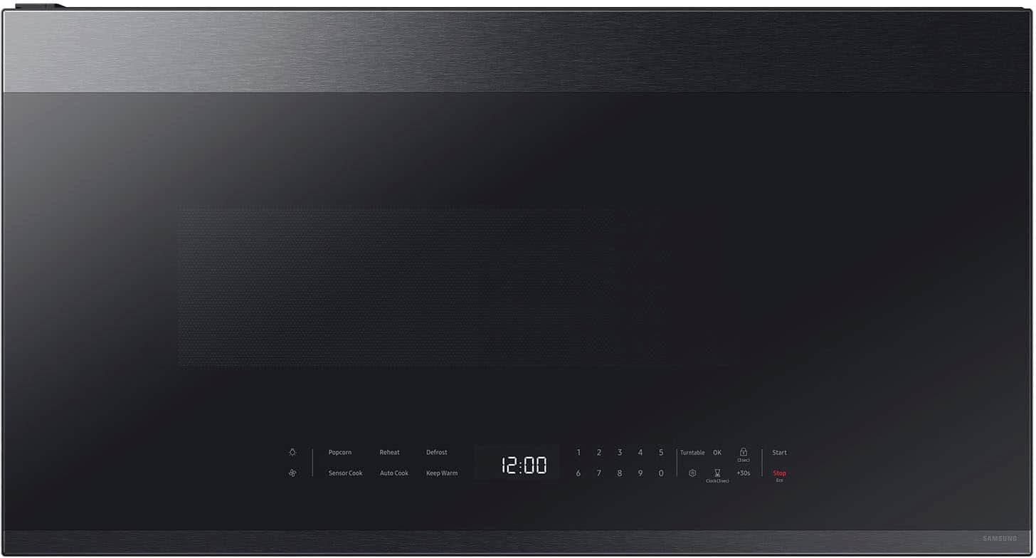 Samsung – Bespoke 2.1 Cu. Ft. Over-the-Range Microwave with Sensor Cooking and Edge to Edge Glass Display – Matte Black Steel