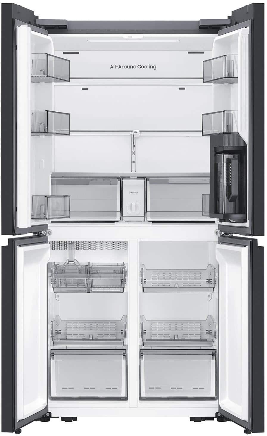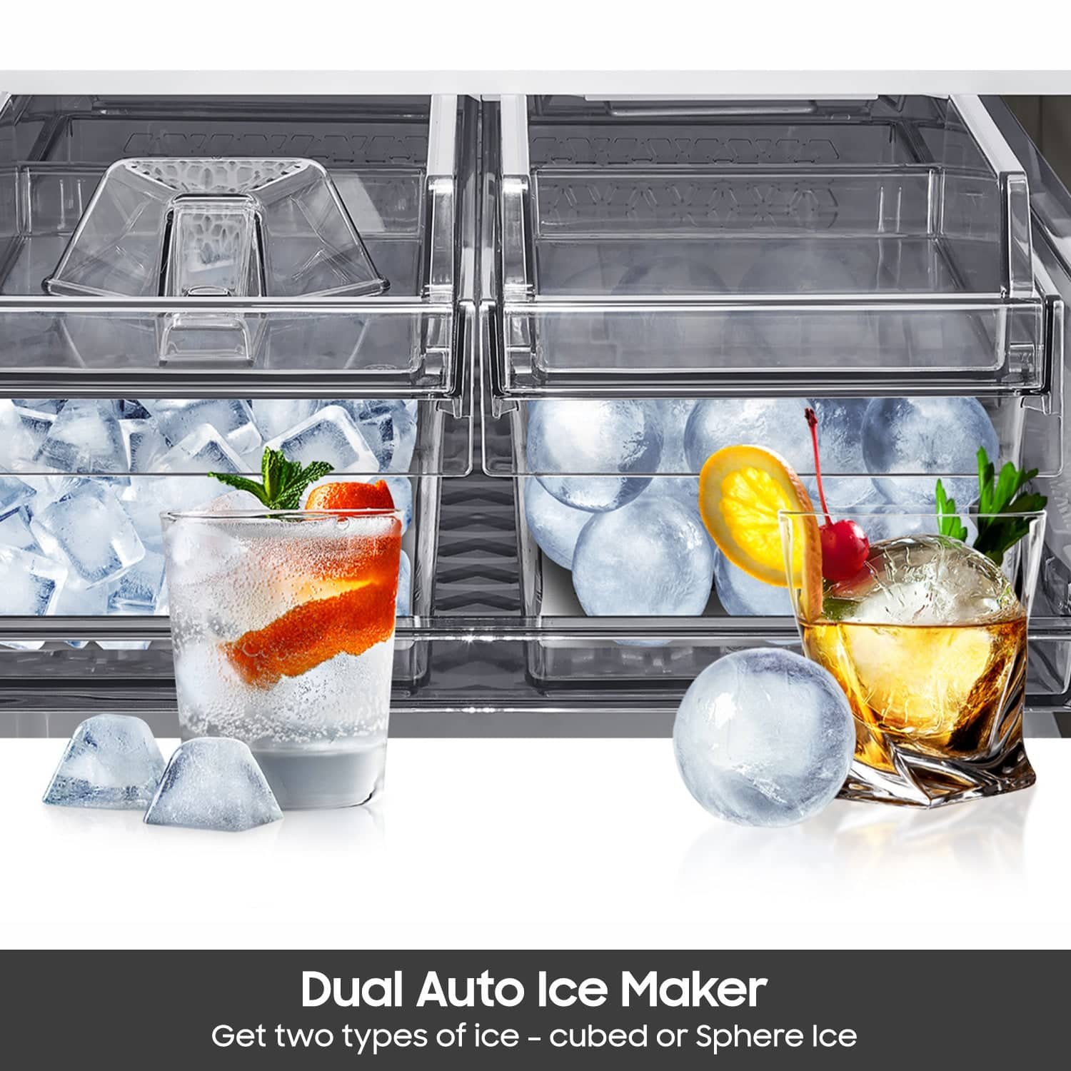 Samsung’s 22 cu. ft. Bespoke 4-Door French Door Refrigerator with zero clearance fit, gives you the built-in look without the need for extra clearance. Plus, get easy access to cold water from inside your fridge with the AutoFill Water Pitcher and choose from two types of ice to chill your drinks with the Dual Auto Ice Maker – cubed ice or Sphere Ice.