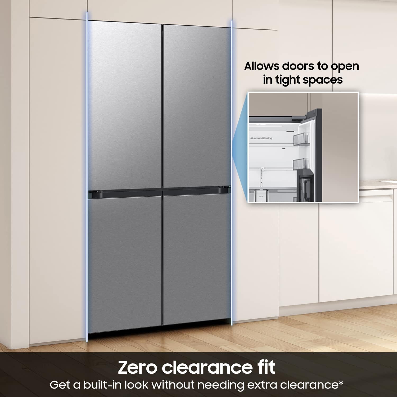 Samsung – Bespoke 22 cu. ft. Counter Depth 4-Door French Door Refrigerator with Zero Clearance Fit and Sphere Ice – Stainless Steel