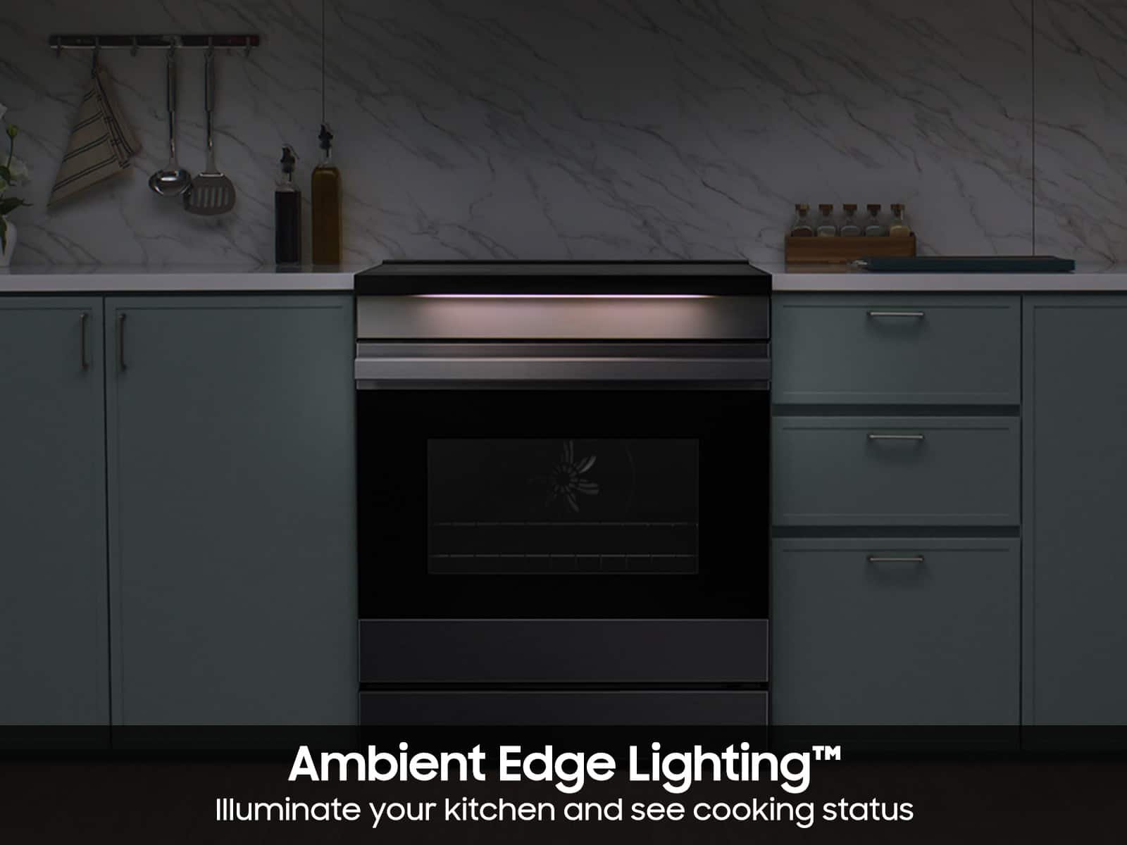 Ambient Edge Lighting adds a distinctive visual element that helps the range feel more premium and more interactive in use. That feature reinforces the higher-end character of the BESPOKE line and makes the appliance stand out from more standard induction ranges. It adds design value without replacing the core cooking strengths.