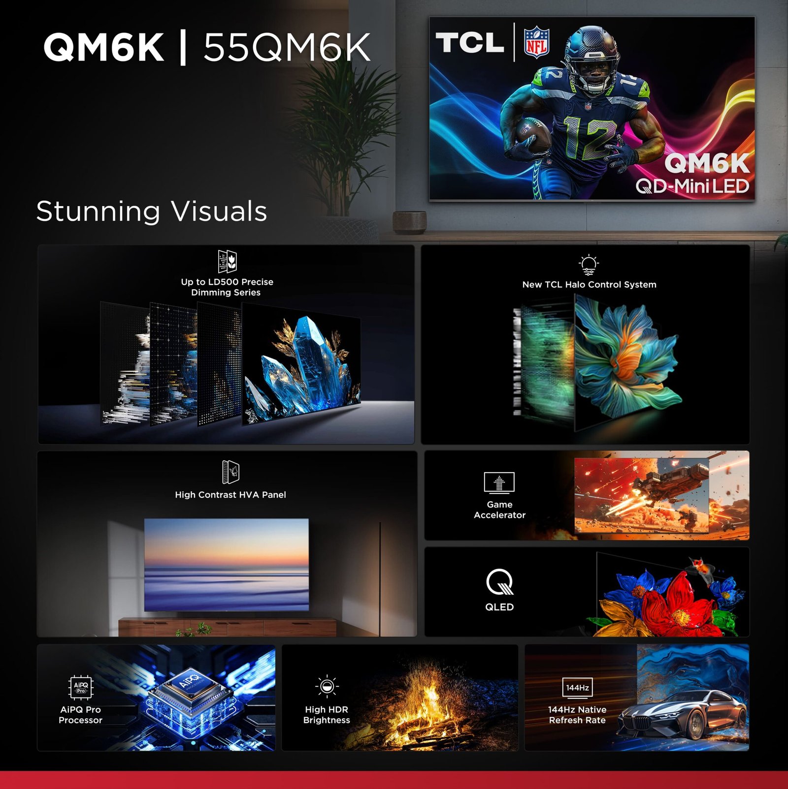 TCL – 55″ QM6K Series 4K UHD HDR QD Mini LED Smart TV with Google TV (2025)