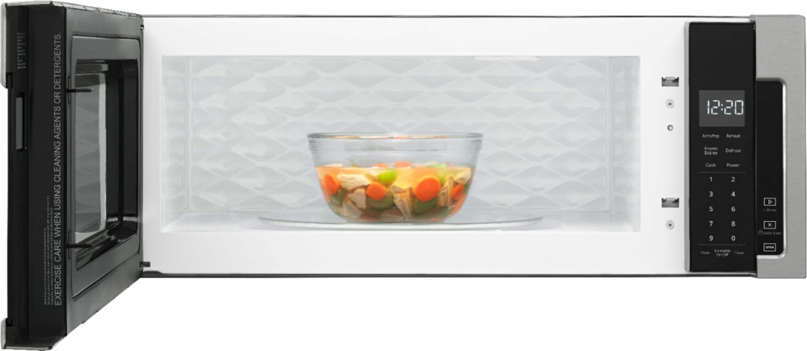 Find a better fit for your kitchen with this small over-the-range microwave with vent that removes smoke, odor and moisture like a standard hood. Save space with a low profile design that fits in the same space as your undercabinet hood but can still cook all the essentials with 1.1 cubic feet of purposeful capacity and 1,000-wattcooking power.
