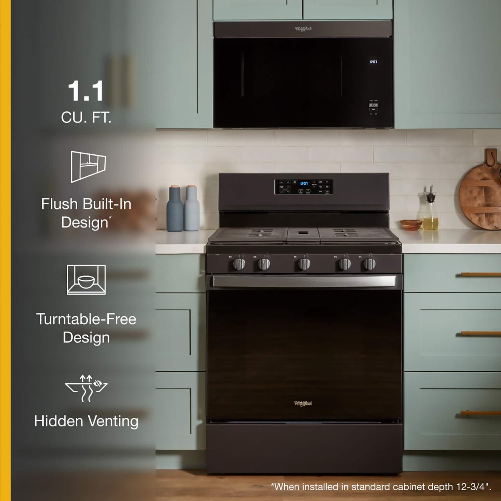 Elevate your kitchen style with the new Flush Built-In Microwave that blends in with standard depth cabinets. Simplify cleanup thanks to the smooth, flat interior of this microwave without a turntable. Fit everyday items, including a 13″ x 9″ casserole dish, in this 1.1 cu. ft. microwave.