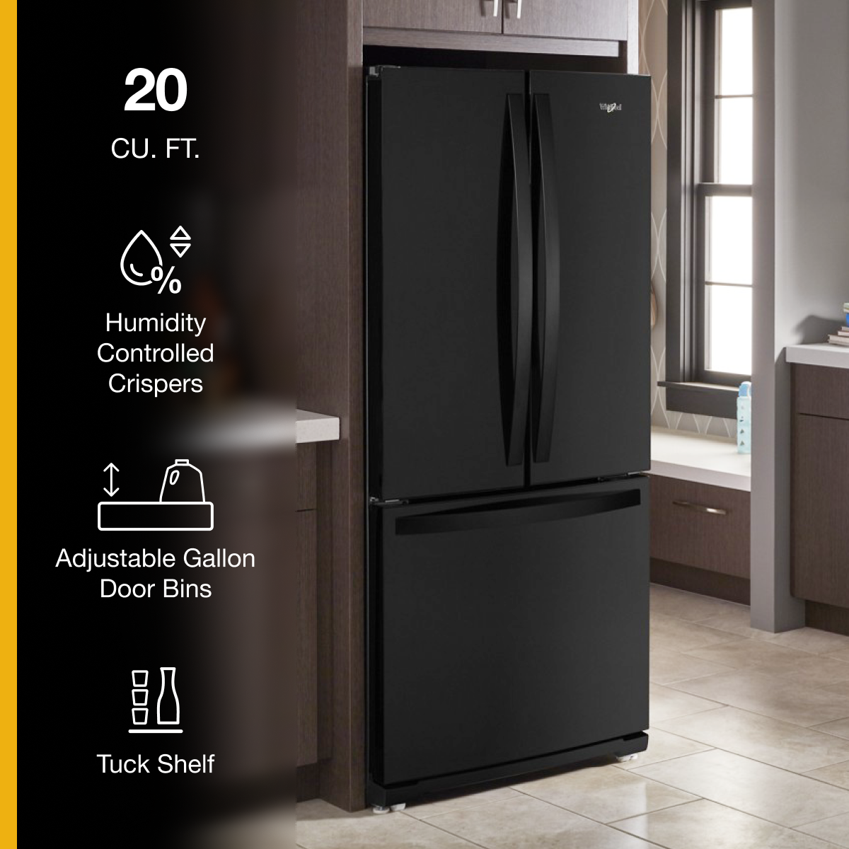 Whirlpool – 20 Cu. Ft. Wide French Door Refrigerator – Black