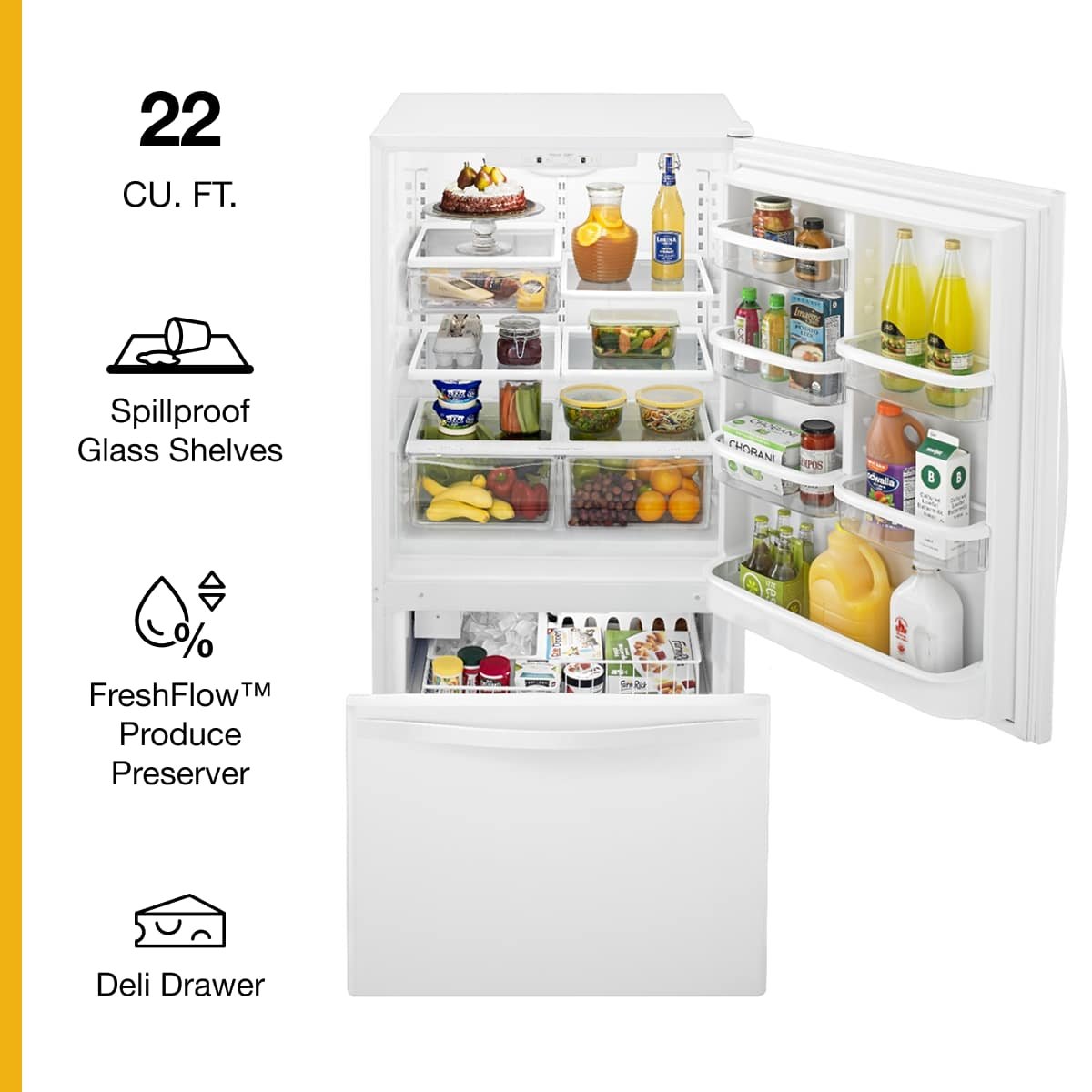 Whirlpool – 22 Cu. Ft. Bottom-Freezer Refrigerator with SpillGuard Glass Shelves – White on White