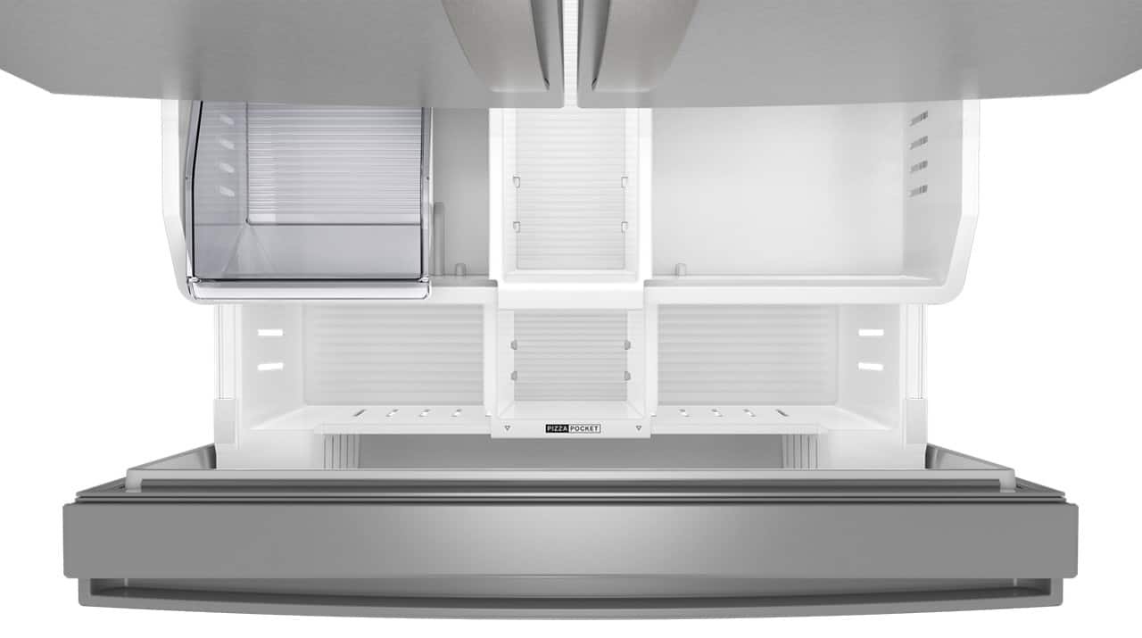 Get Family-Sized capacity with the Whirlpool 31 cu. ft. French door refrigerator. Large Capacity Ice Production makes over 3 lbs of ice every day. Pint Size storage provides easy access to small items. And flexible storage with half and full Adjustable Glass Shelves.