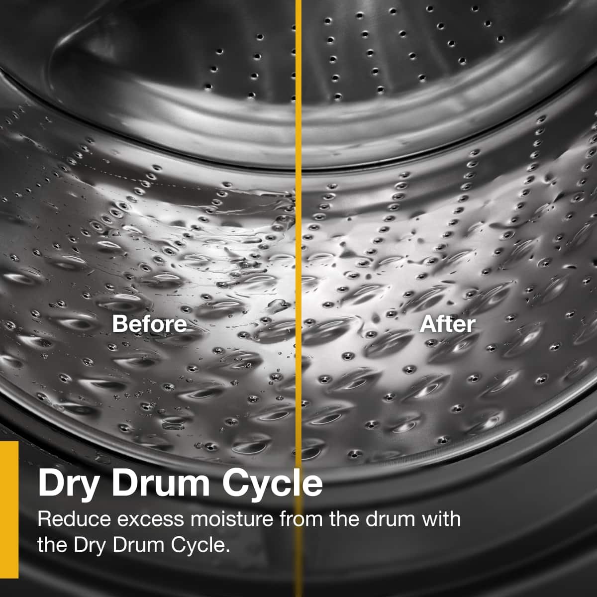 Whirlpool built this washer around its FreshFlow vent system, which is designed to help manage the moisture that often causes front-load owners the most frustration. By combining the FanFresh option, dry-drum support, and antimicrobial protection, the washer aims to reduce odor-related concerns between cycles. That makes it particularly appealing for shoppers who want the efficiency and fabric care of a front loader without accepting freshness as a maintenance battle. It is designed to be easier to live with over time.