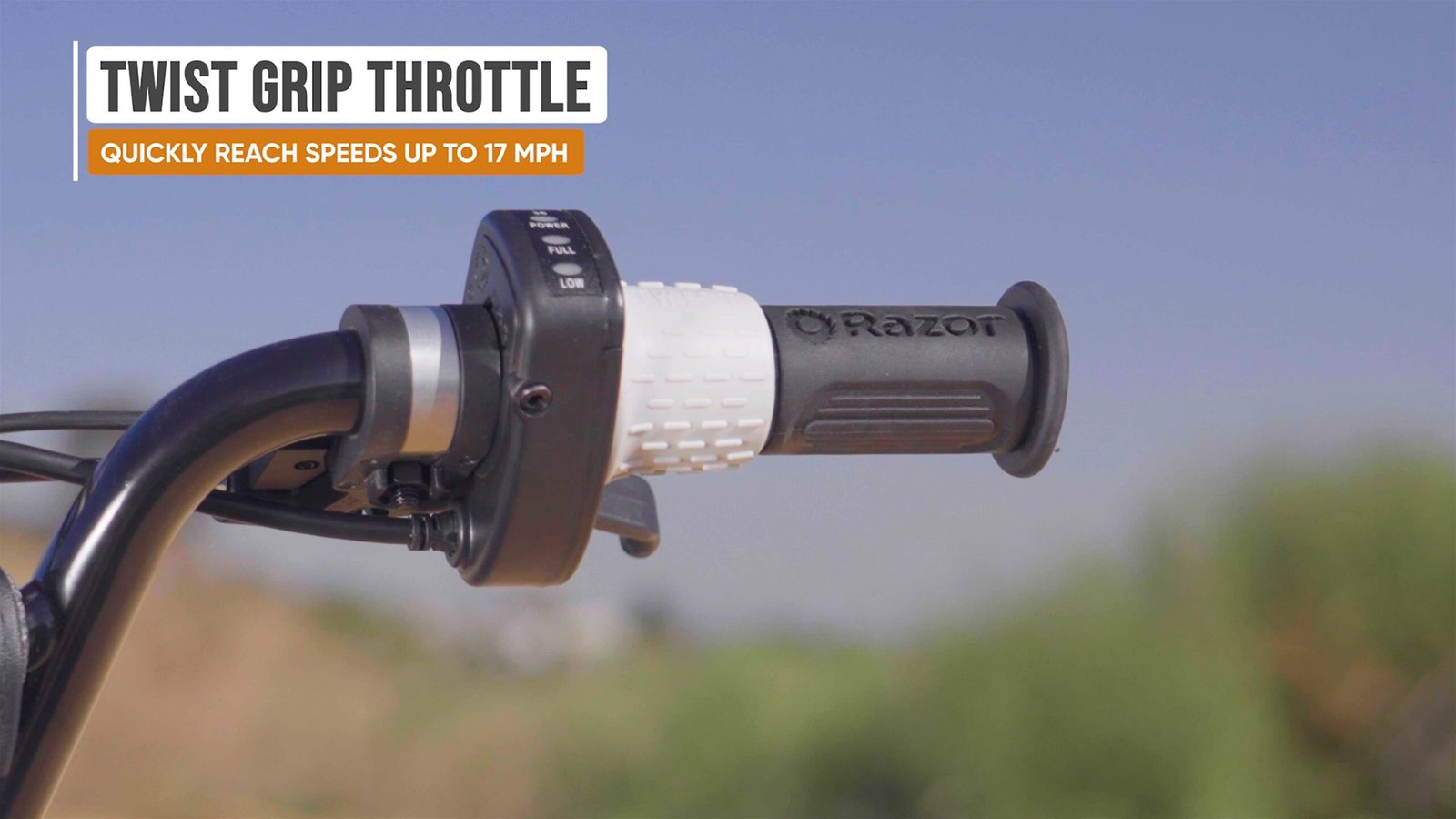 The Razor MX650 Dirt Rocket is designed for fun off-roadrides, packing a high-torque, variable-speed, electric motor to help you blast up hills and conquer trails and bumps on the dirt. Scaled down supercross-inspired styling, with dual suspension and dual-disc brakes, the MX650 is ready to help you push the limits of off-road adventure. Designed with rear-wheel drive for better traction and balance control, the chain-driven electric motor powers riders up to 17 mph (27 km/h) for up to 40 minutes of continuous use, while the steel frame, double-crown fork and shatter-resistant fairings mean the MX650 is tough enough for youth riders to have a blast on rough terrain..