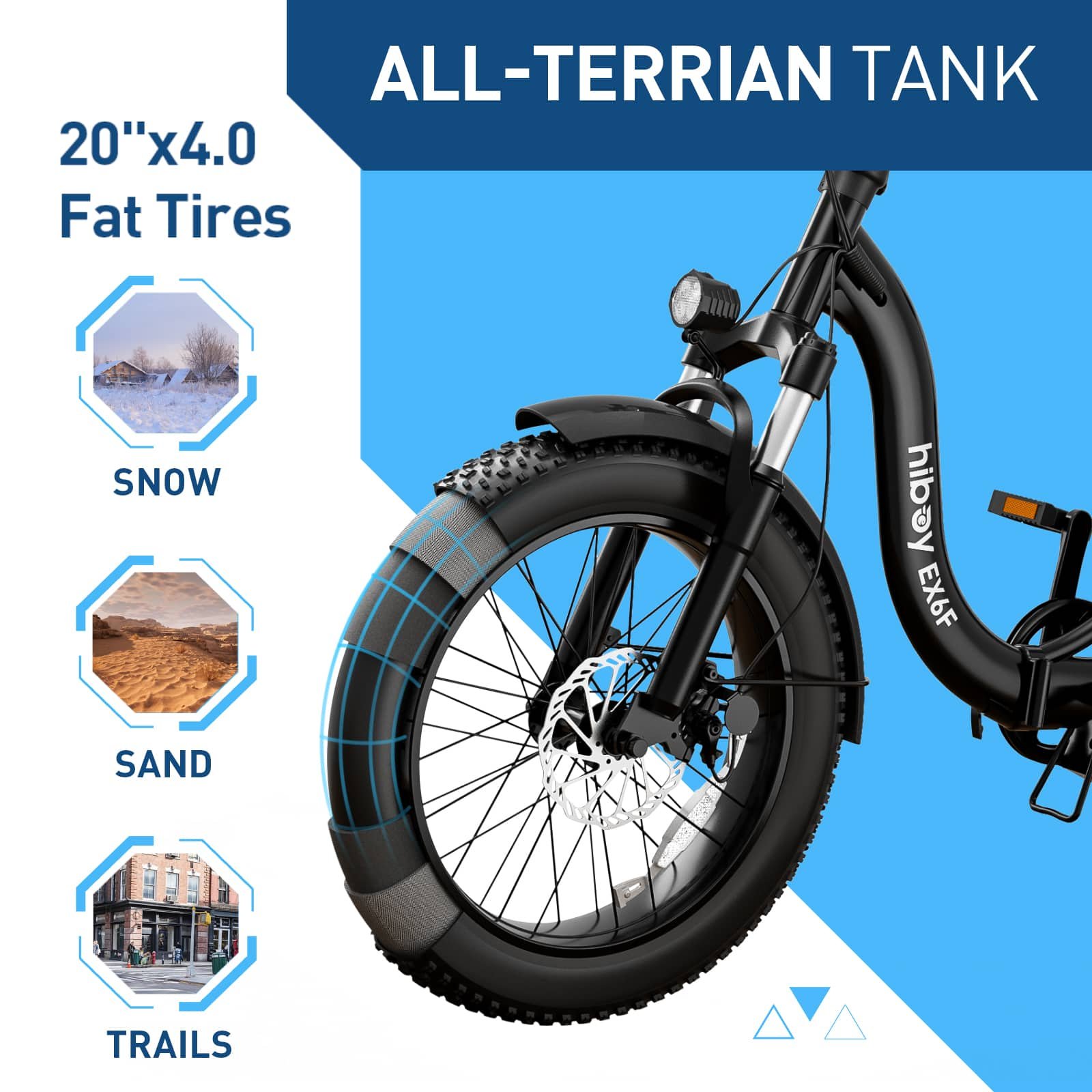 Hiboy EX6F Folding Electric Bikes for Adults, 750W Peak Power Motor, 20 * 4.0” Fat Tires, Removable Battery, Hydraulic Fork, 7-Speed Shifting, Commuting and Outdoor Adventure