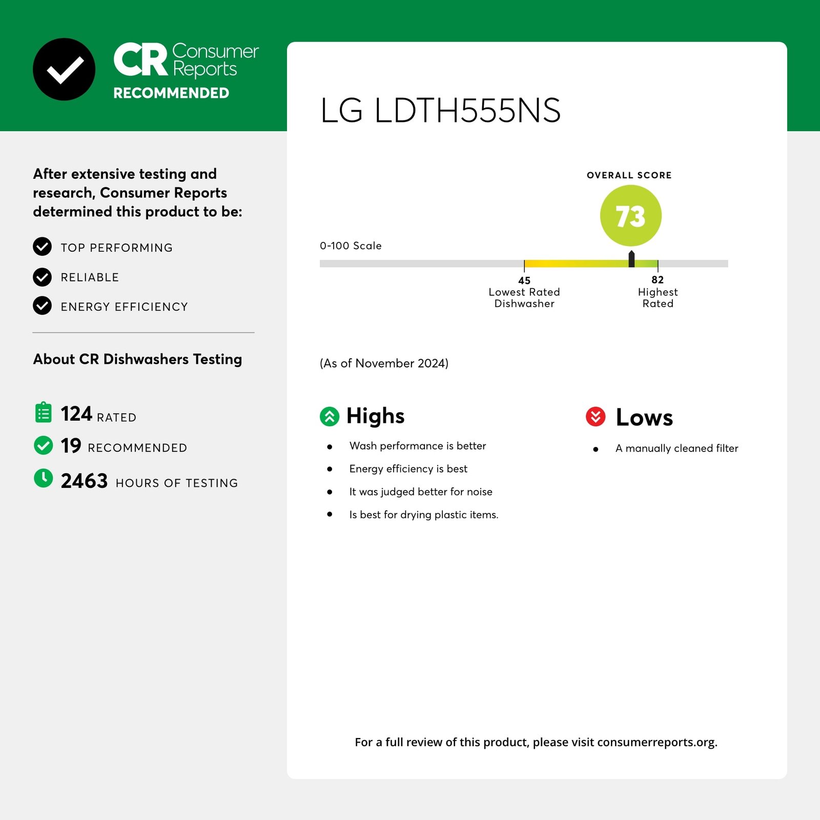 LG – 24″ Top Control Smart Built-In Stainless Steel Tub Dishwasher with 3rd Rack, QuadWash Pro, and 46dB – Stainless Steel