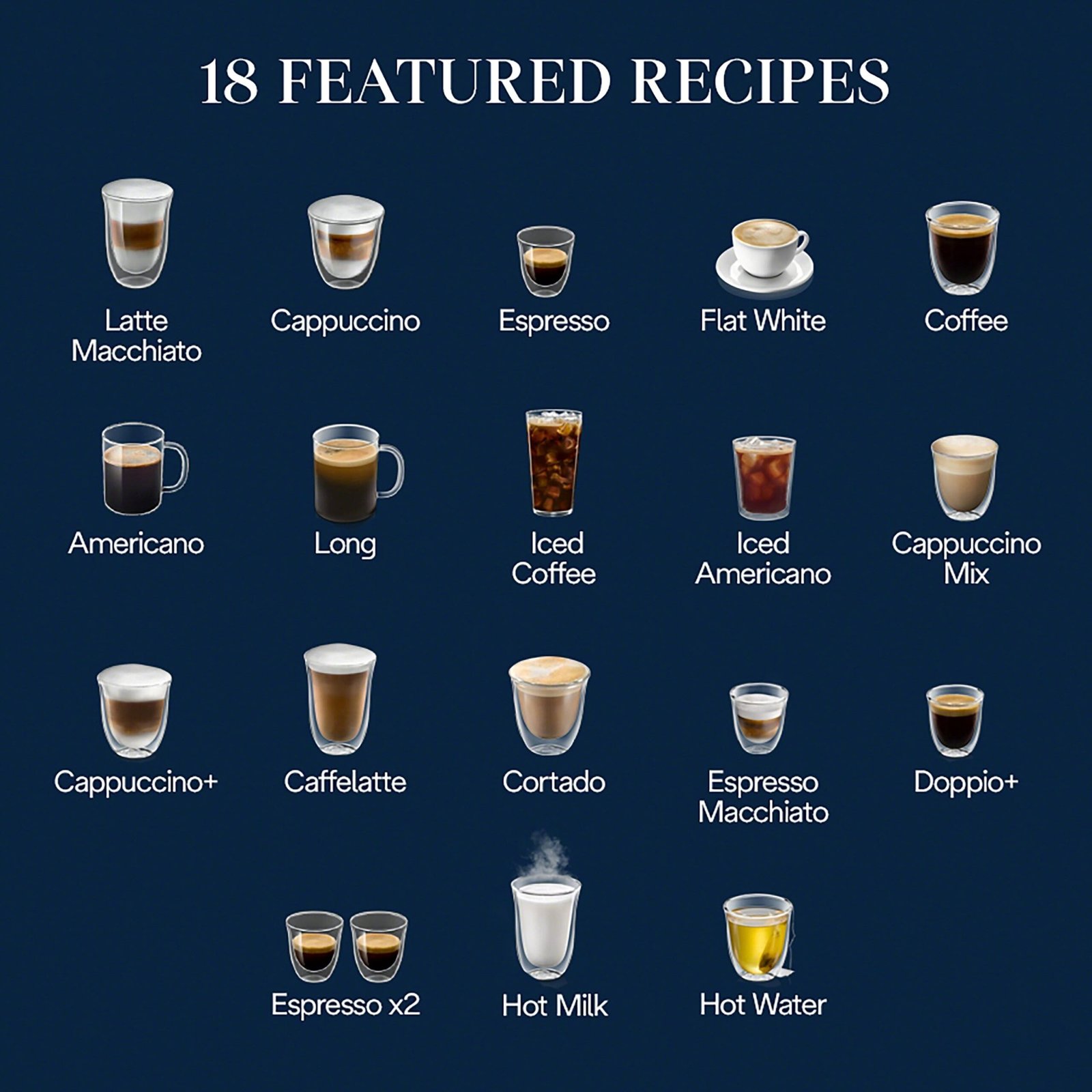 Designed for a seamless experience, the fully automatic Magnifica Plus guides you through the brewing process. Easily craft drinks with the touch of a button with 18 recipes to choose from, including Latte Macchiatos, Cappuccinos, Americanos & Iced Coffee. The built-in conical burr grinder and brewing unit deliver espresso with the perfect grind, dose, and brew every time, saving you time and effort. De’Longhi’s proprietary LatteCrema technology automatically froths milk and milk alternatives, allowing you to personalize your drink with 3 different frothing settings – light, creamy, or dense. The full touch screen display and soft touch buttons make navigation intuitive and guide you to craft and customize your beverage quickly. With up to 4 unique user profiles, adjust size and intensity to fit your preferences. Find your favorite drinks faster with Smart One-Touch intelligence, programmed to remember your most popular choices. Clean-up is simple with our auto-clean function and detachable, dishwasher-safe parts. With the Magnifica Plus, enjoy your café favorites at home, at the touch of a button.