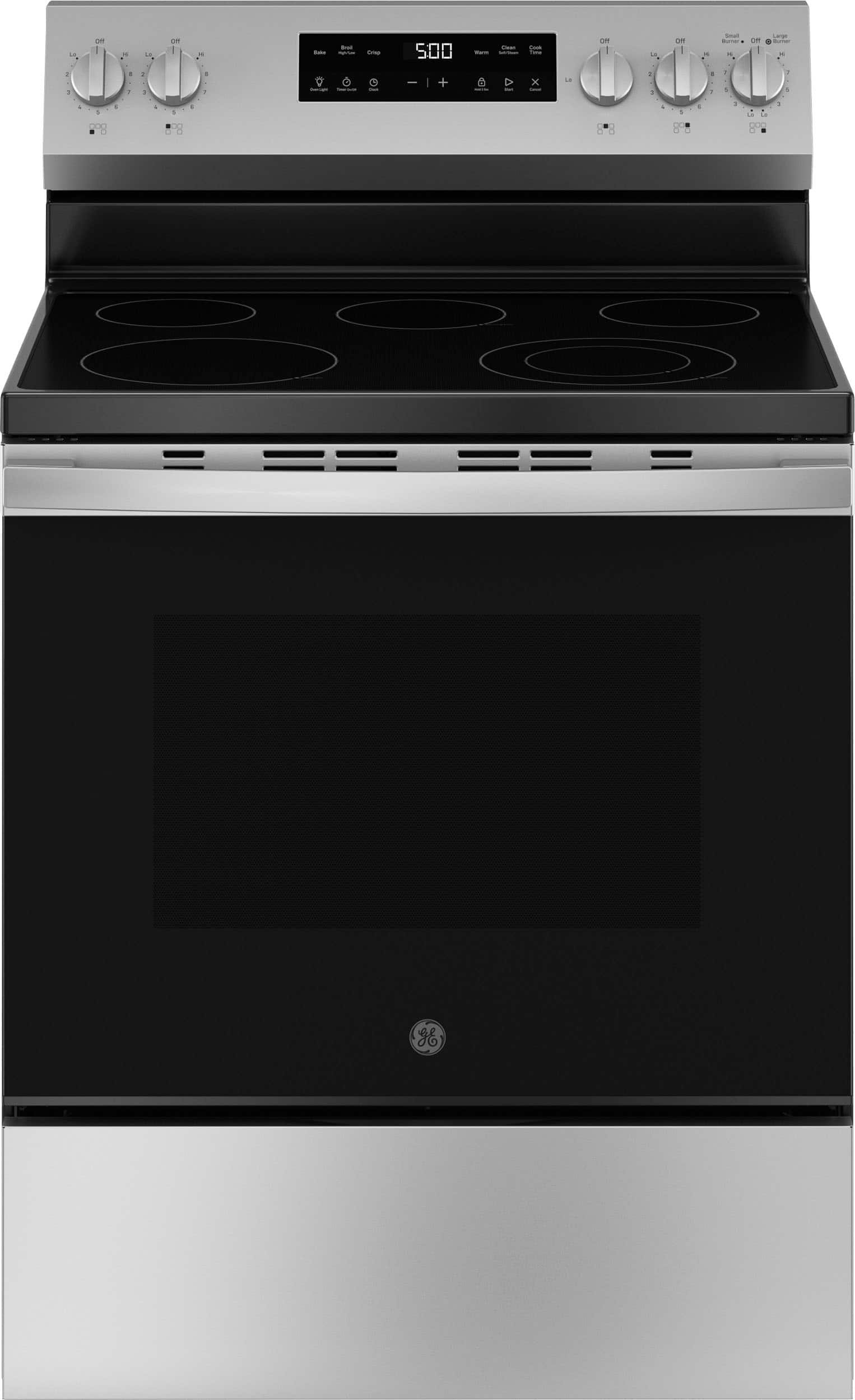GE – 5.3 Cu. Ft. Freestanding Electric Range with Self-Clean and Steam Cleaning Option and Crisp Mode – Stainless Steel