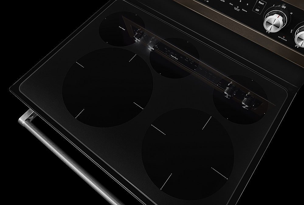 This versatile electric freestanding range produces flawless cooking results with Even-Heat True Convection. The unique bow-tie design and convection fan ensure the inside of the entire oven is heated to, and stays at, the perfect temperature. The cooktop features five heating surfaces, including a dedicated warming zone, allowing you to do more on your range.