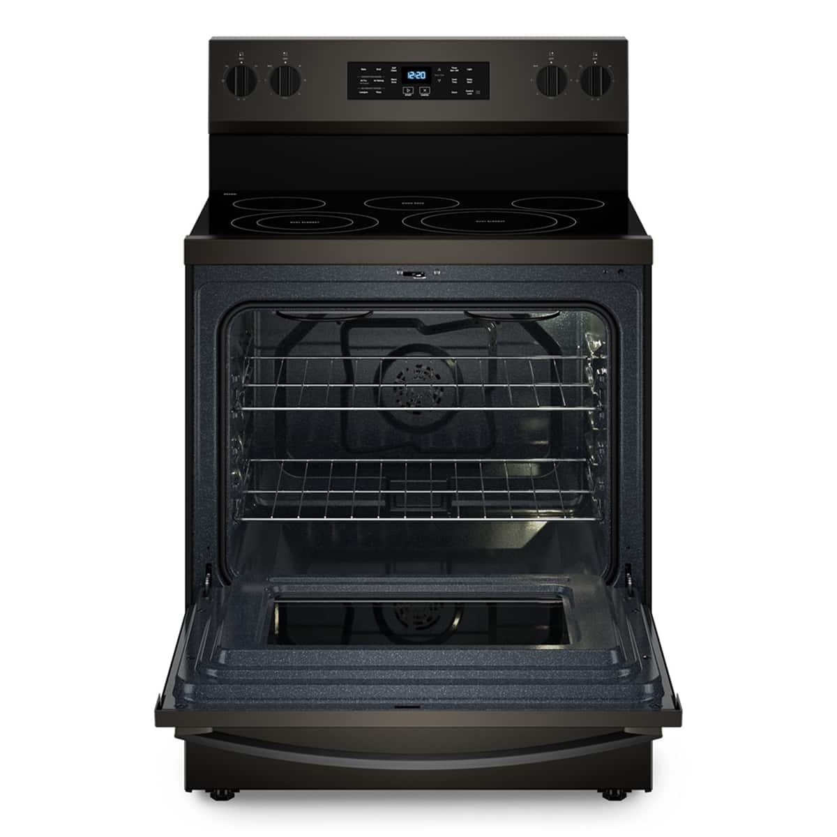Whirlpool – 5.3 Cu. Ft. Freestanding Electric Range with Air Cooking Technology, No Preheat Air Fry and Air Baking and Self Clean – Black Stainless Steel