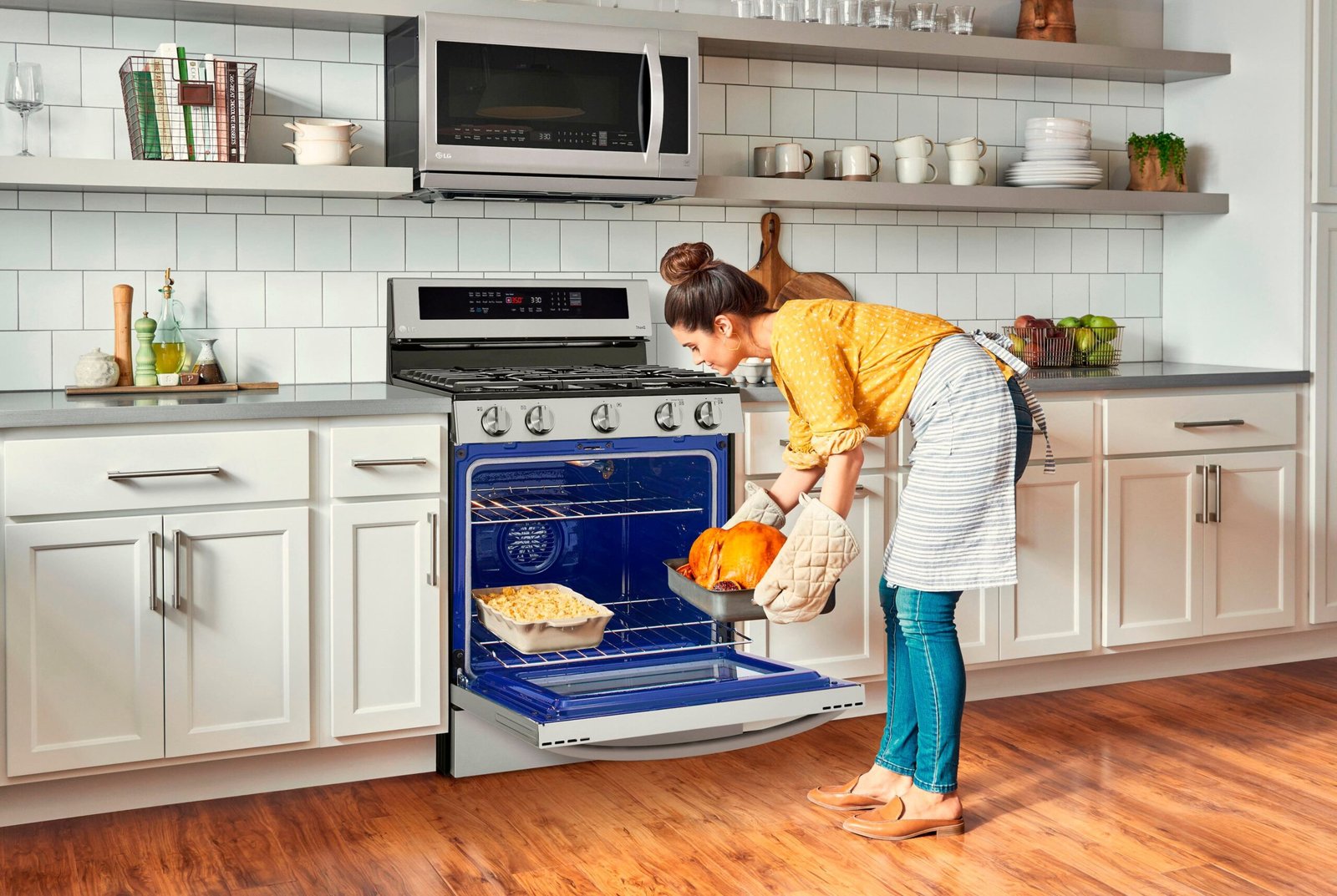 Taking a page from LG’s wildly popular InstaView refrigerator, this range lets you check cooking progress without opening the door or reaching over a hot cooktop to flip a switch. Just knock twice on the window to turn on the oven light. Air Fry delivers crispy flavor fast with no preheating and makes enough to feed a crowd—no need to buy yet another gadget that takes up counter space. From zucchini fries to hot wings, see what you can do with this all-in-one range.