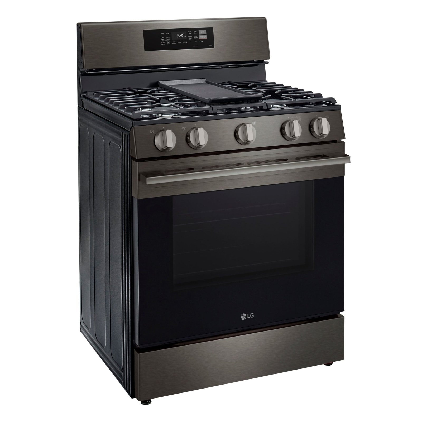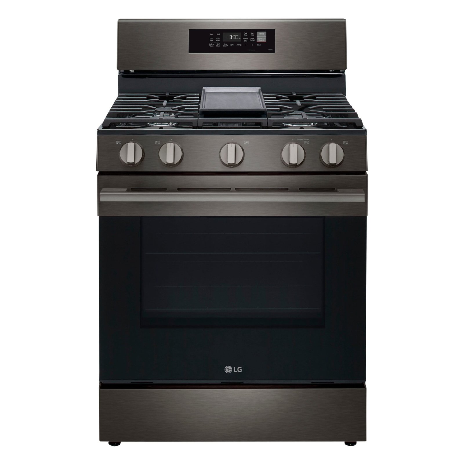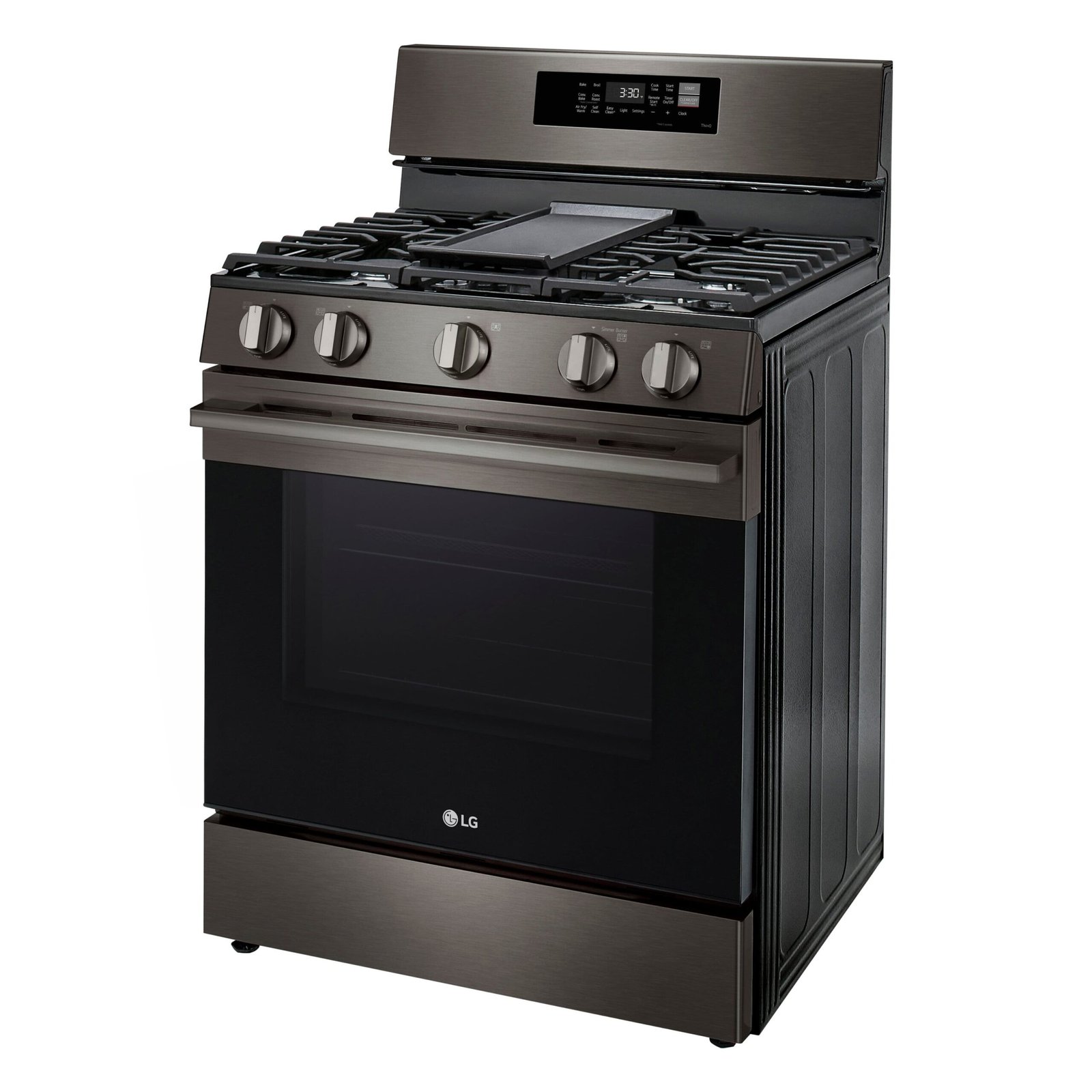 LG – 6.3 Cu. Ft. Freestanding Gas True Convection Smart Range with EasyClean, Air Fry and Premium Handle – Black Stainless Steel