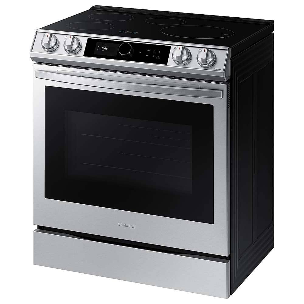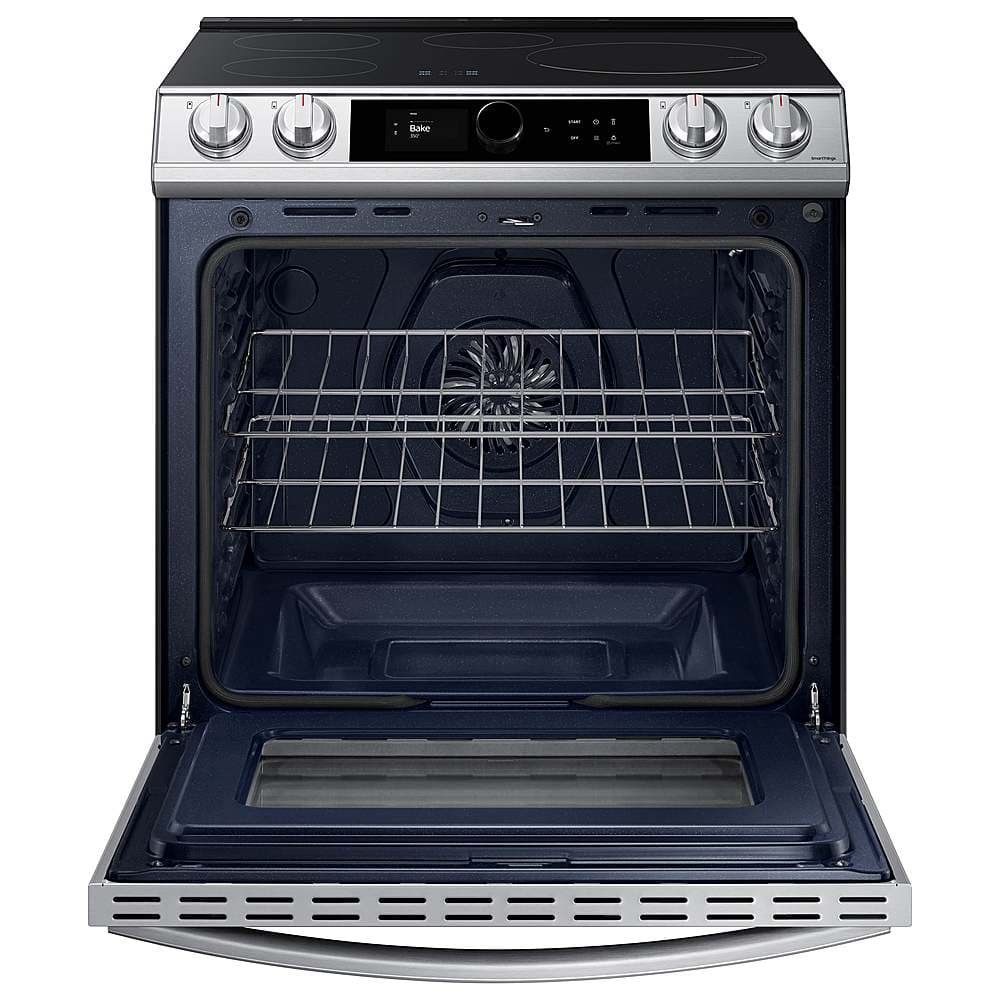 The Samsung Smart Slide-In Induction range with Smart Dial and Air Fry is fully Wi-Fi connected and voice-enabled, giving you the tools you need to simplify the cooking experience in the kitchen. This Slide-In range features Virtual Flame technology giving the visual of gas cooking, with the precision of induction cooking.