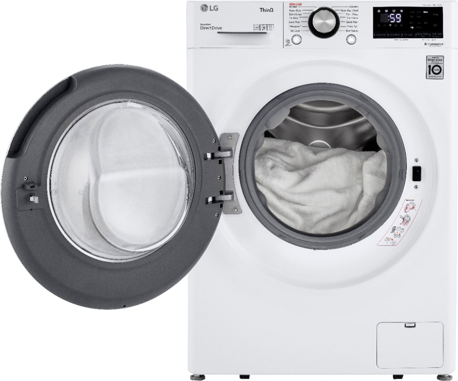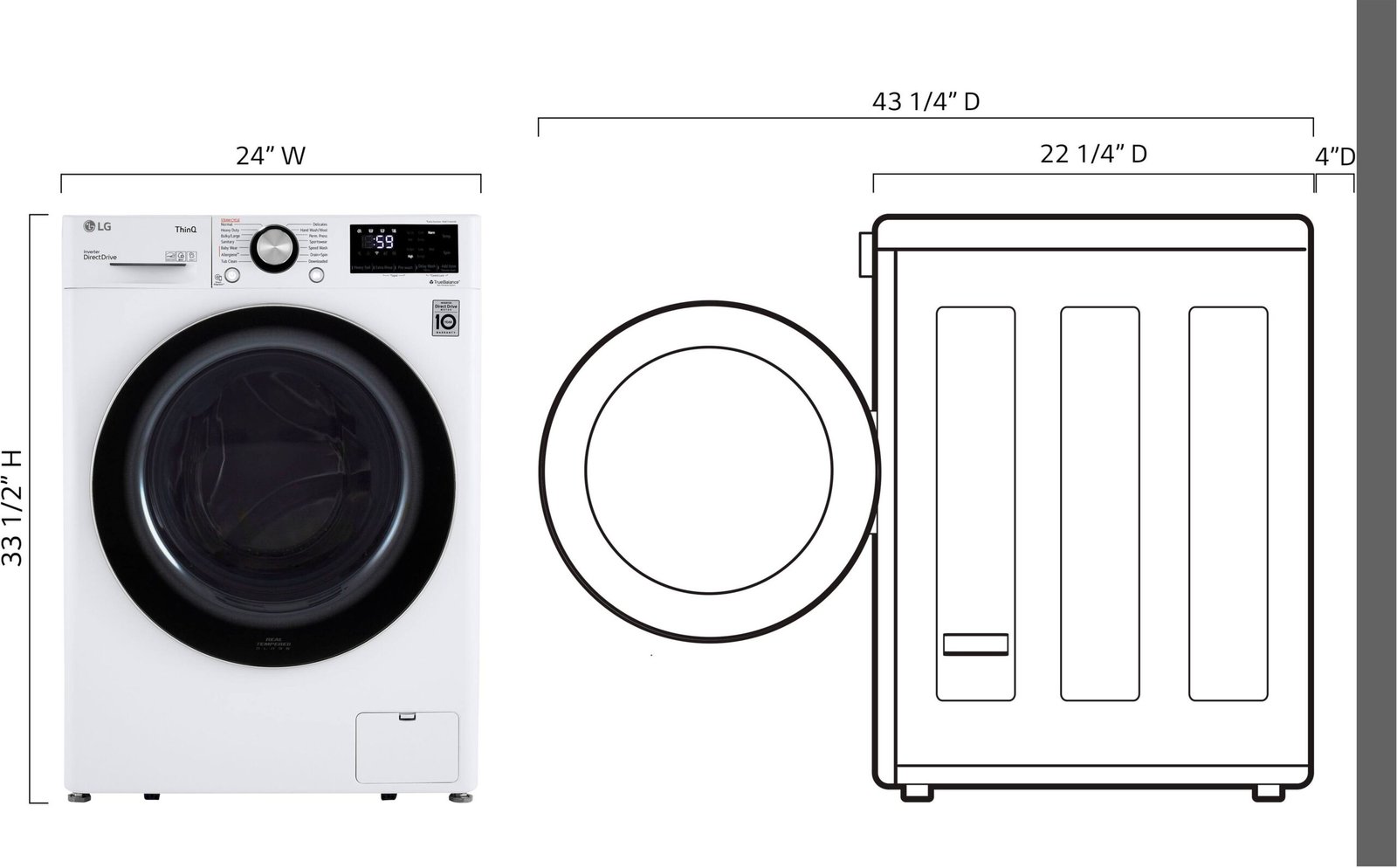 At just 24” wide, this washer fits easily into almost any space, with a closet depth design that even tucks behind closed doors. Despite its compact size, it scores huge on the style scale and is fully loaded with the latest LG innovations. Built-in intelligence makes laundry less of a chore by taking out the guesswork. The Allergiene cycle harnesses the power of steam to reduce allergens such as dust, pet dander and pollen in bedding, baby clothes and more. And built-in wi-fi lets you keep tabs on laundry no matter where you are with the ThinQ app.
